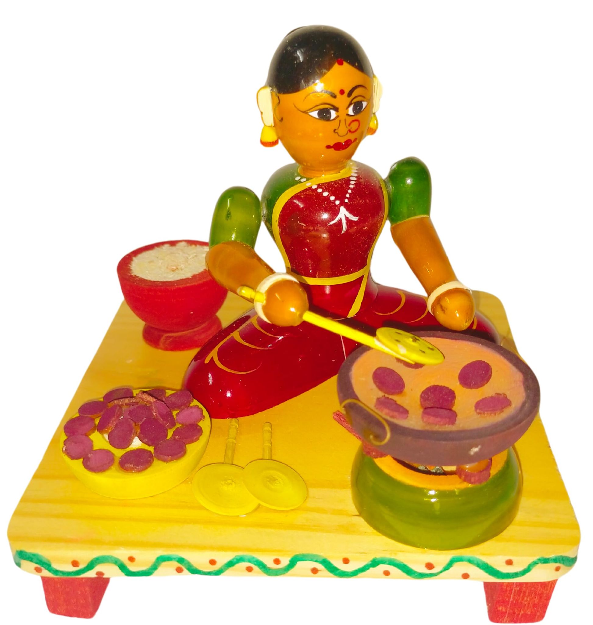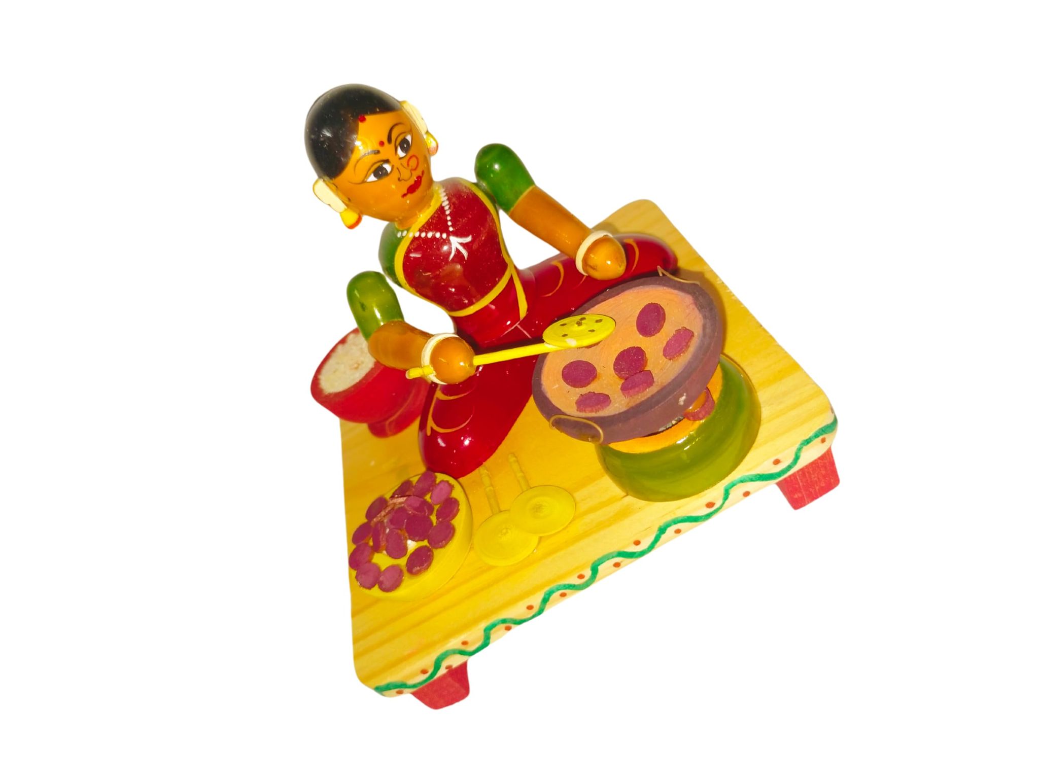Charming wooden figurine of a lady selling tiffins.