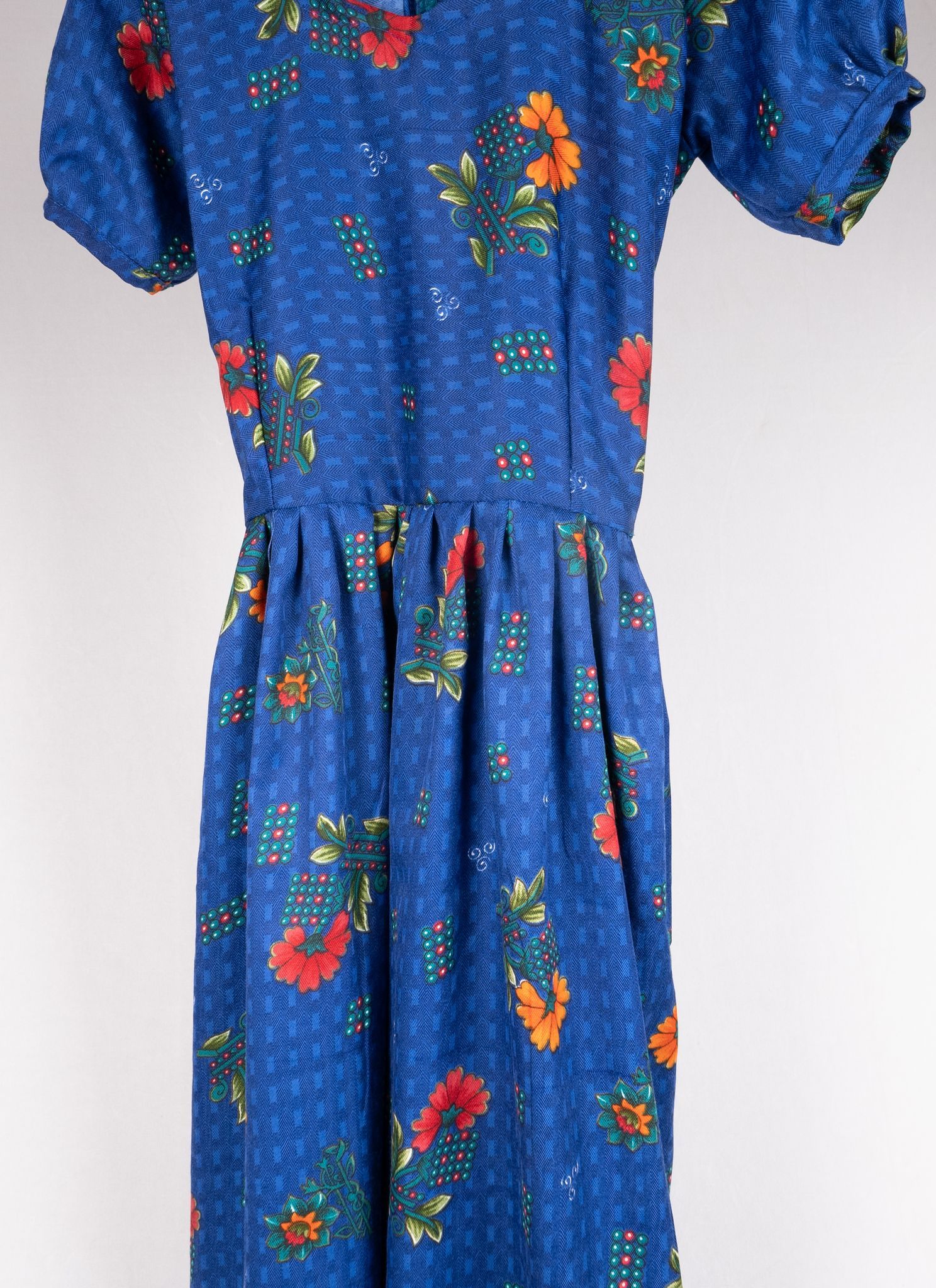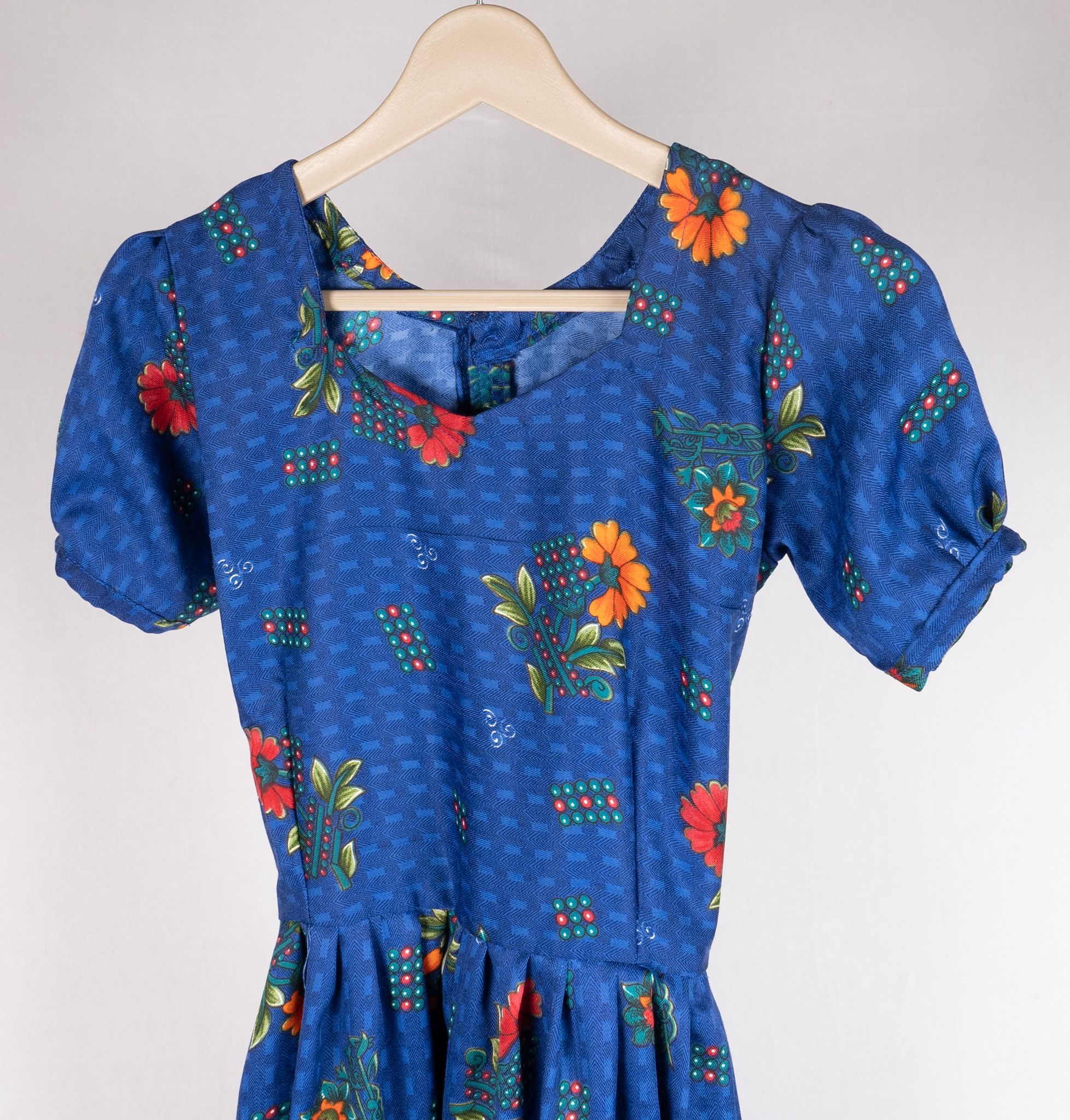 Blue Floral Print A-Line Dress with Square Neck and Short Sleeves - Elegant and Comfortable Dress for Women