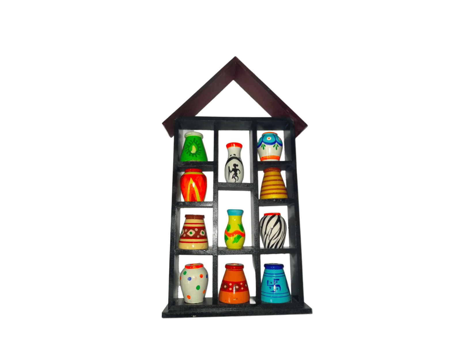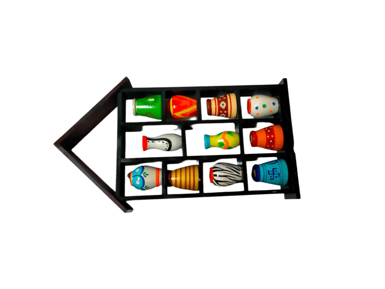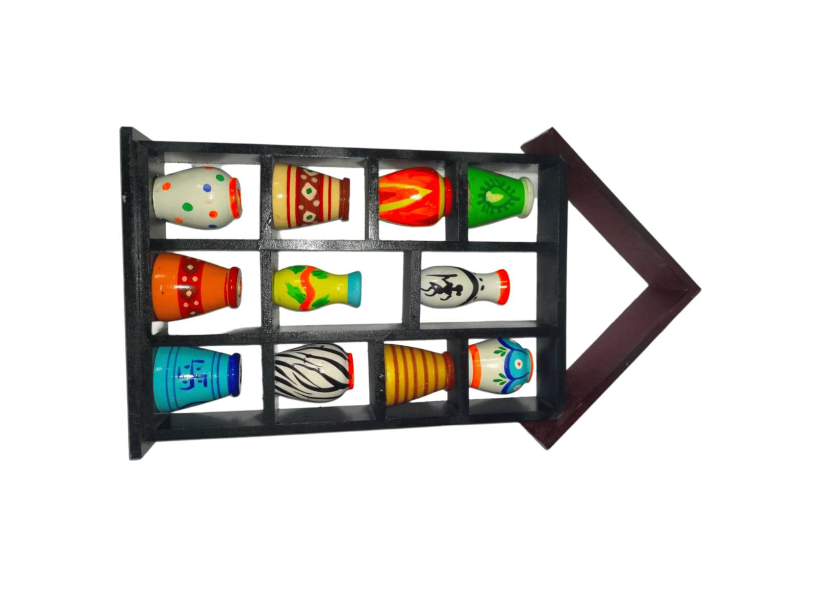 Beautiful wooden vases with hand-painted designs, perfect as home decor showpieces.