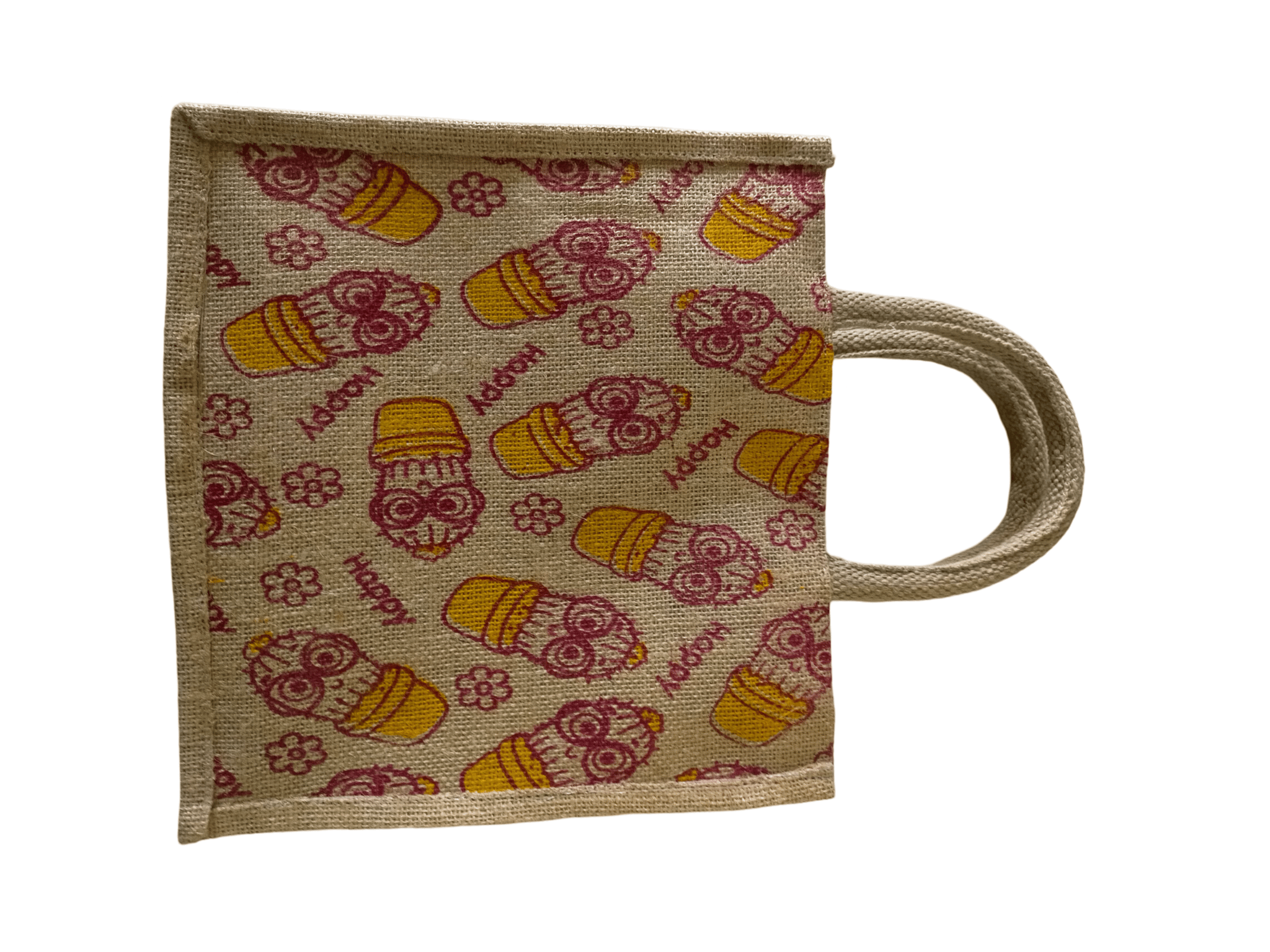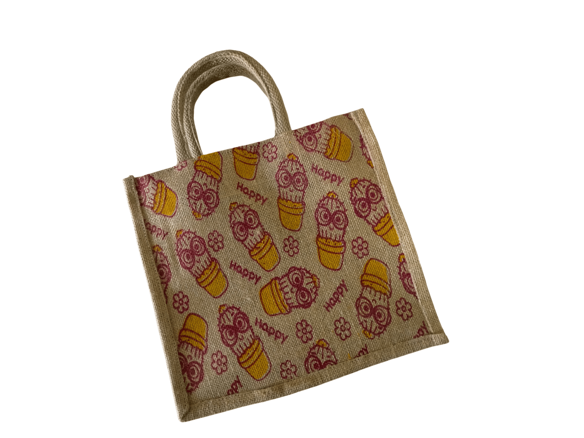 A fun and eco-friendly Minions-themed jute lunch bag for kids and adults.