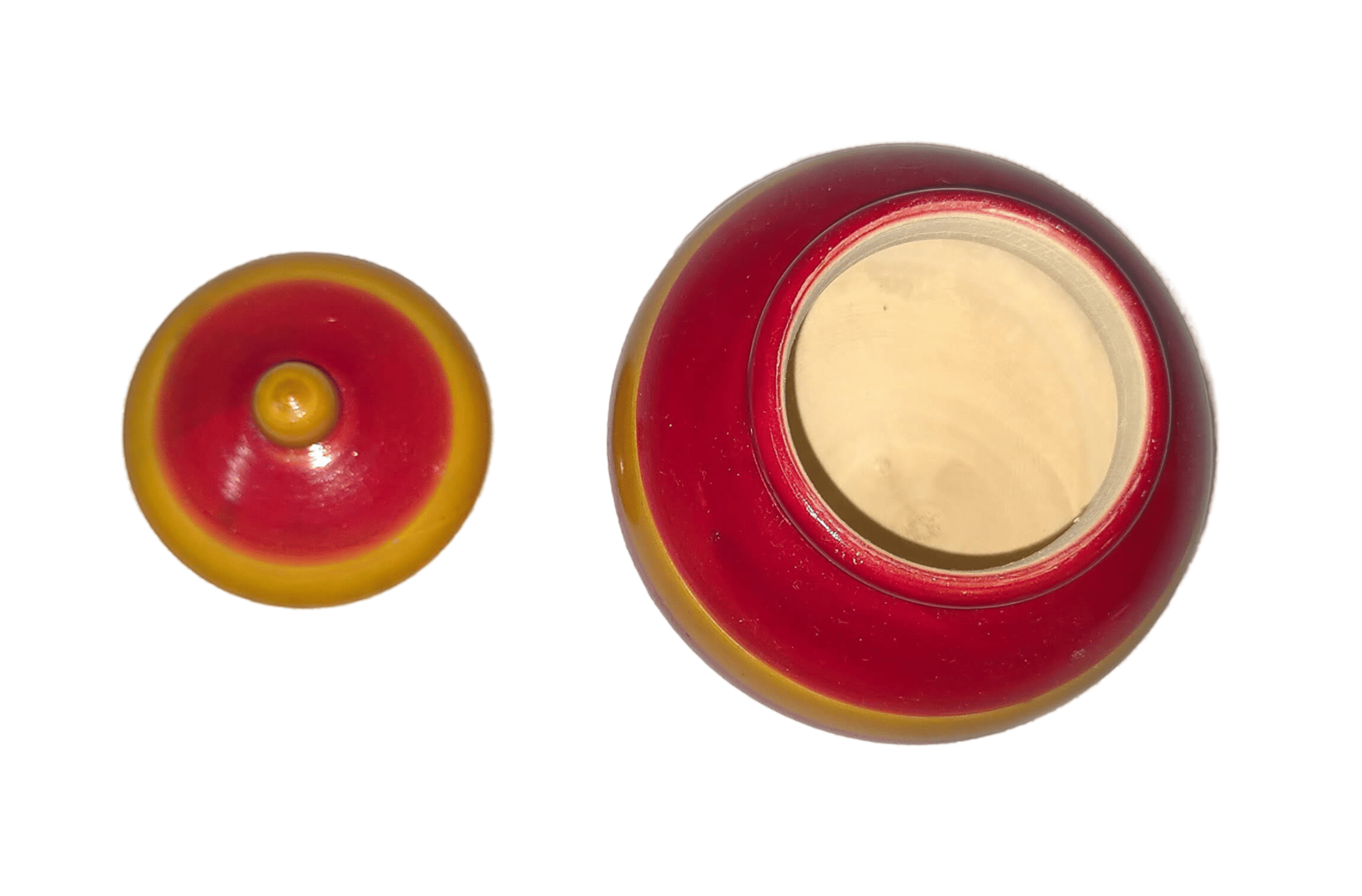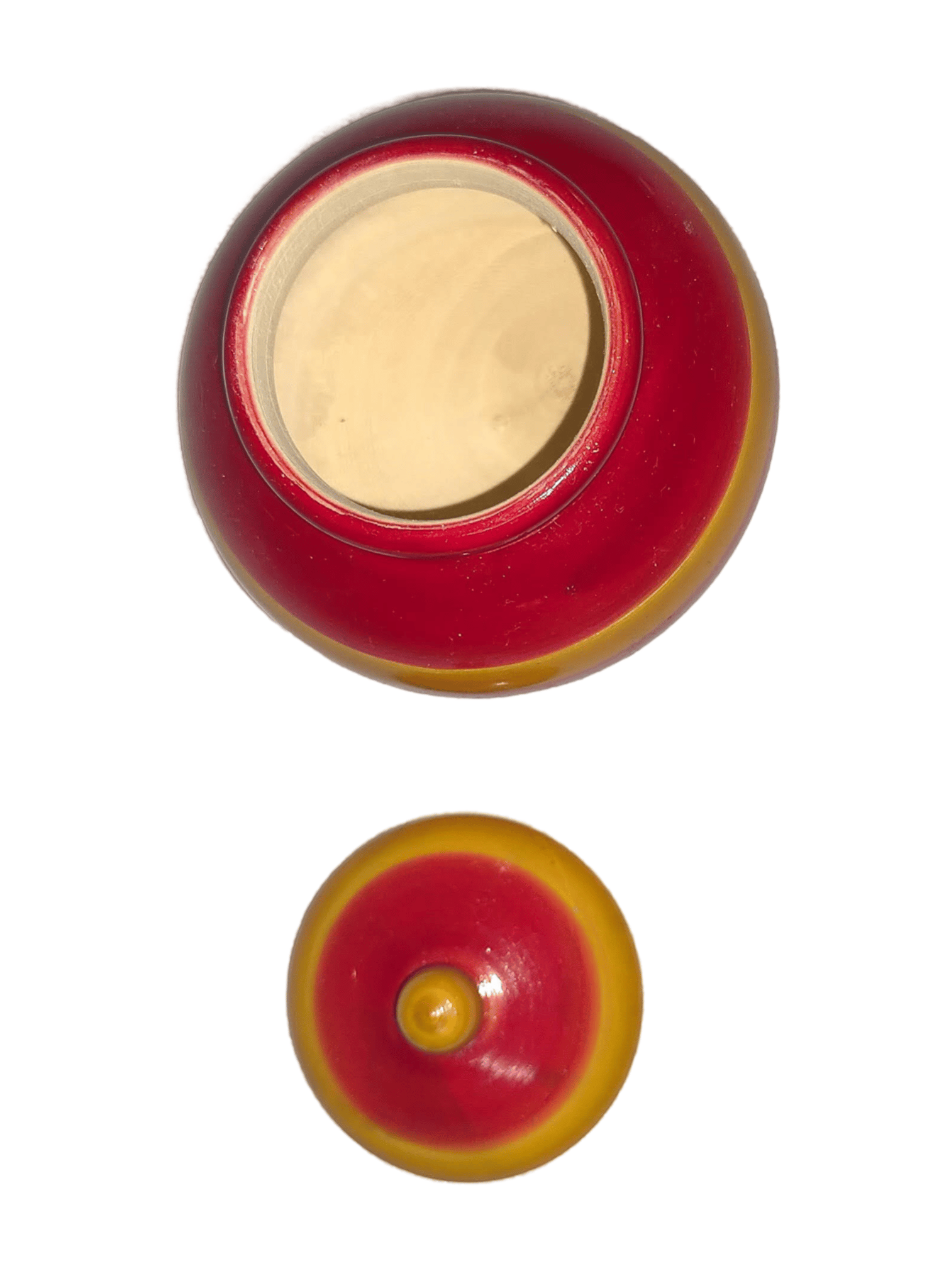Handcrafted Wooden Kumkum Box with Lid - Red and Yellow