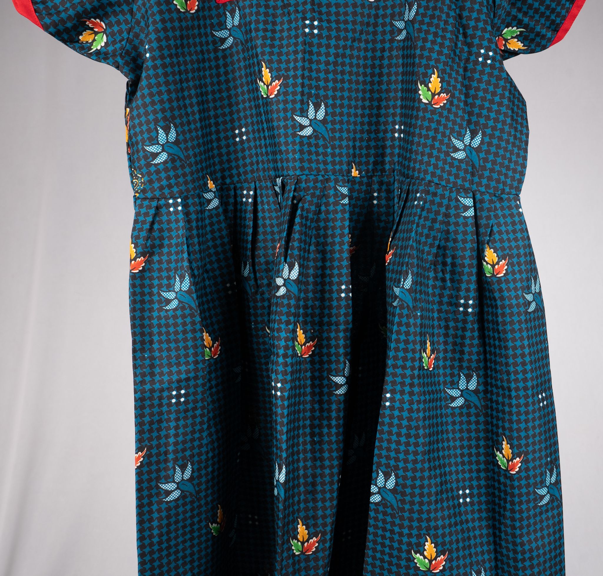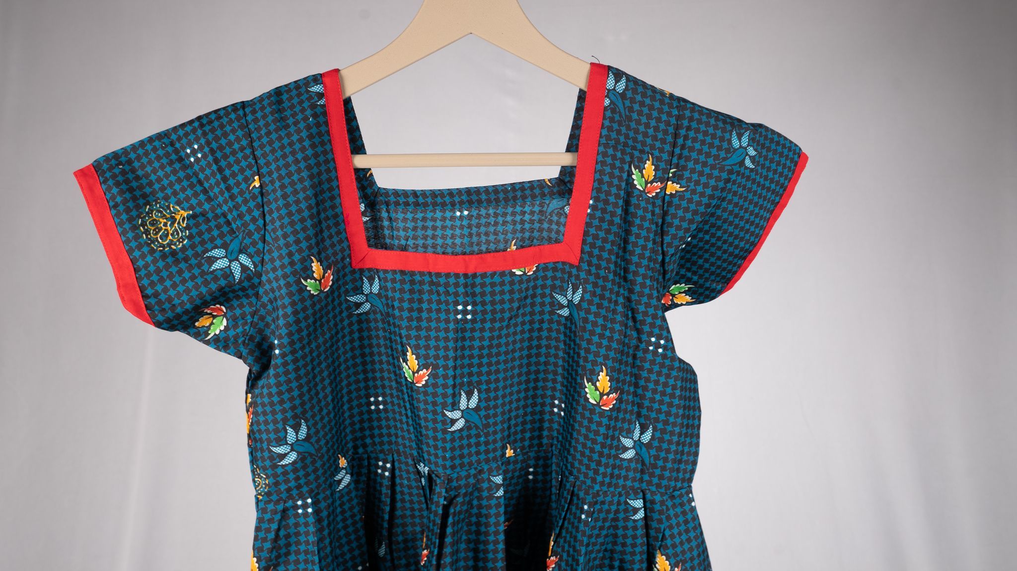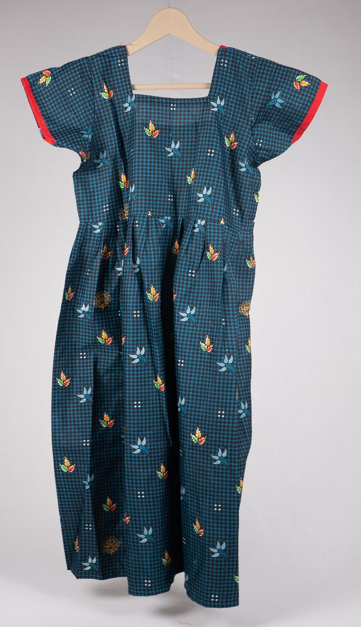 Women's Blue Floral Print Cotton Maxi Dress with Square Neck and Short Sleeves