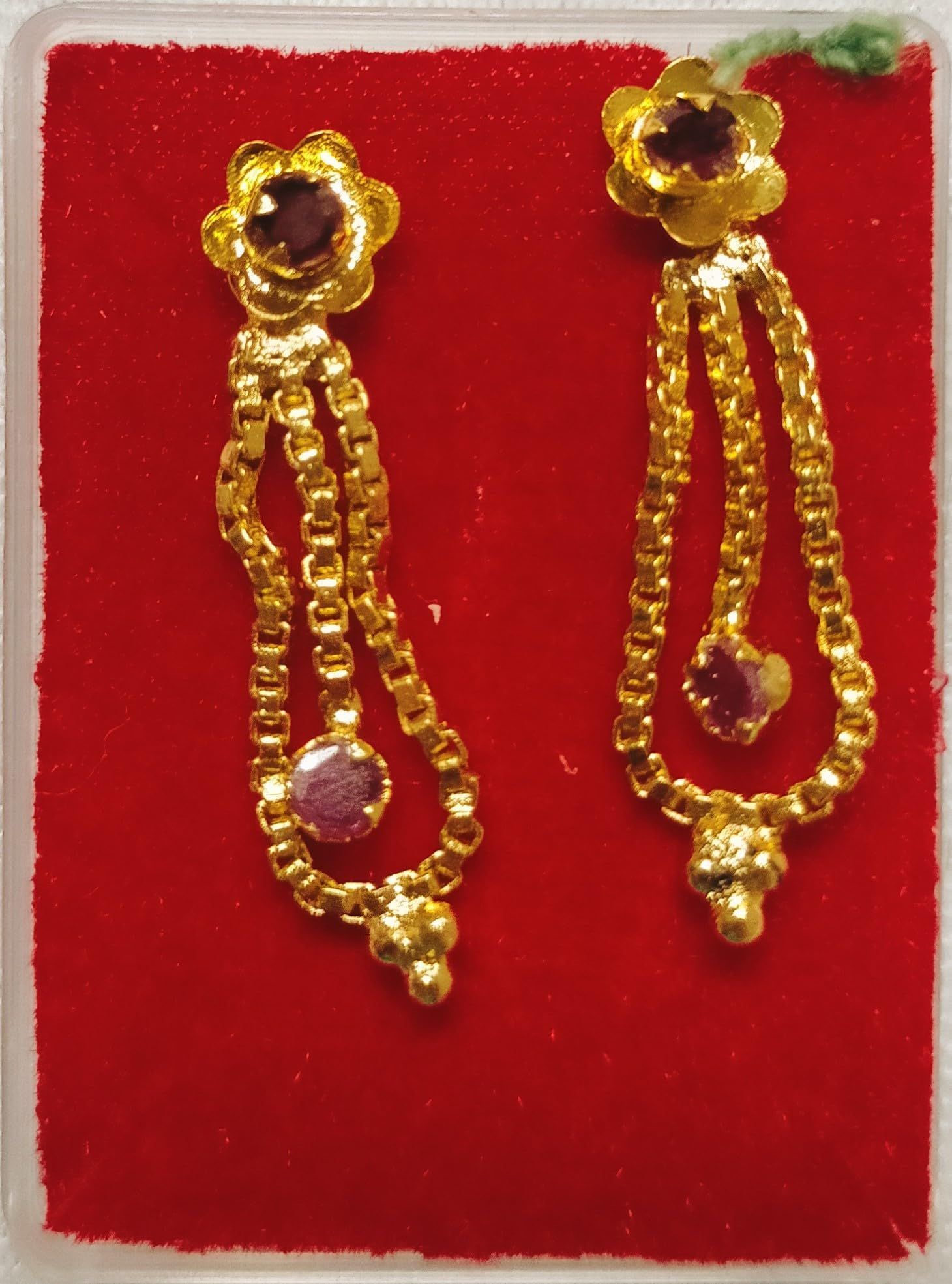 A versatile pair of earrings featuring a stud and a delicate hanging design.
