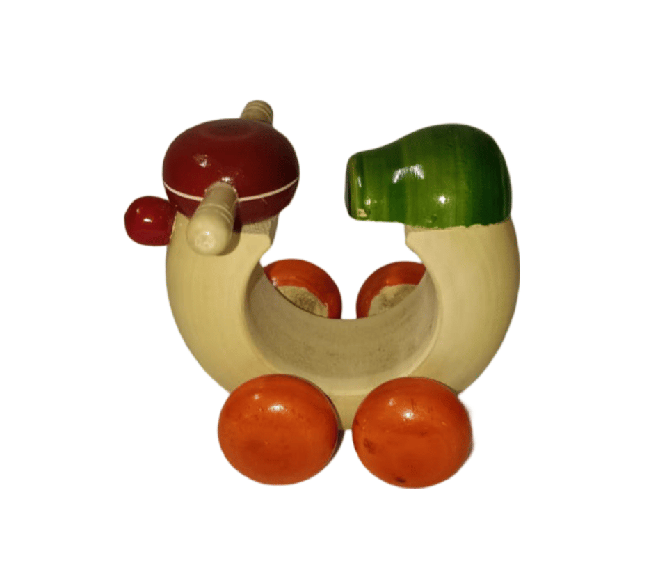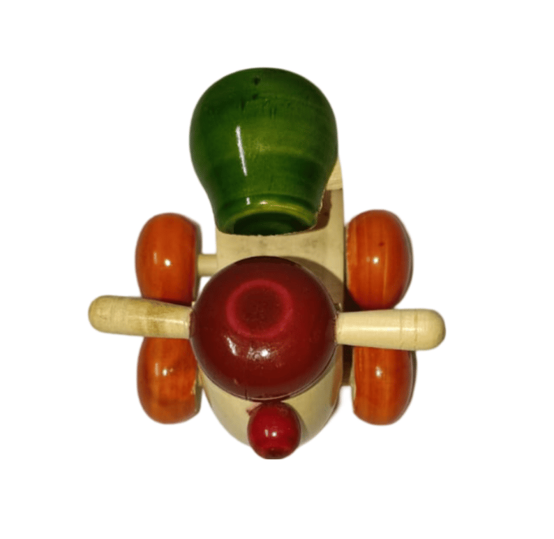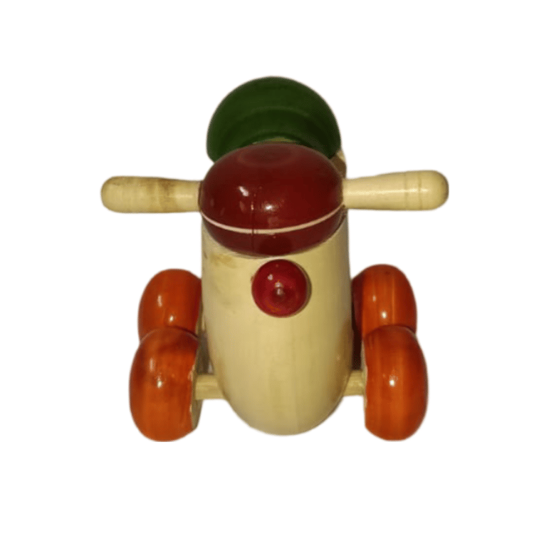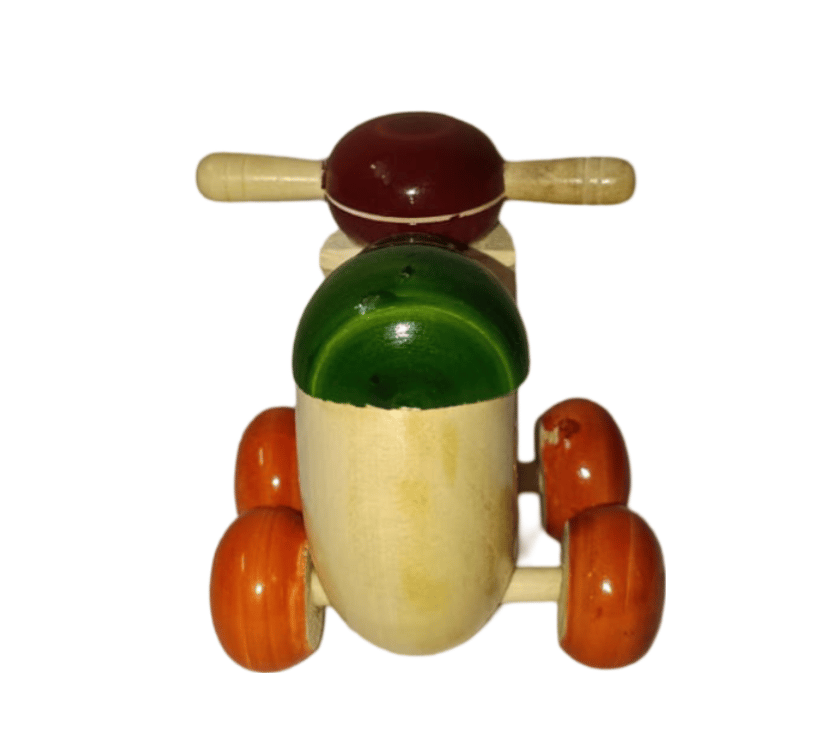 A handcrafted wooden toy scooter from Etikoppaka, made using traditional Indian toy-making techniques.