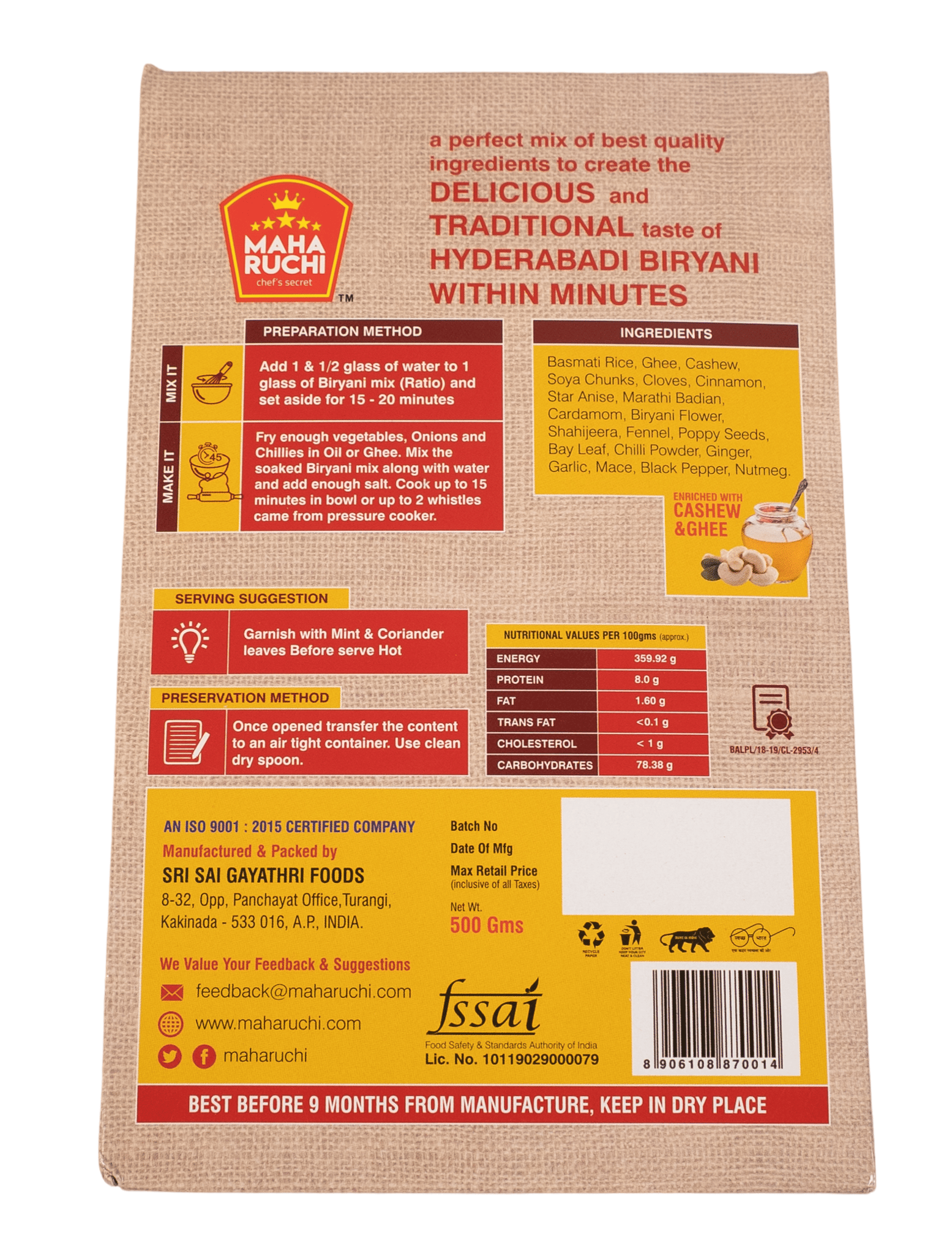 Maha Ruchi Ready Mix Basmati Biryani (500g)