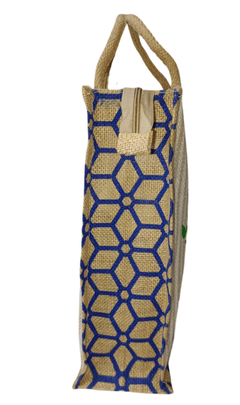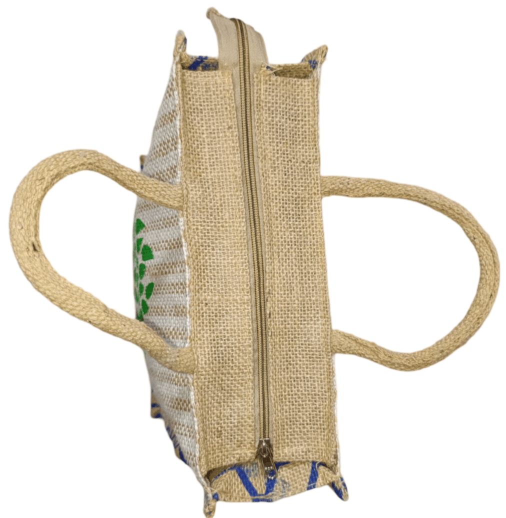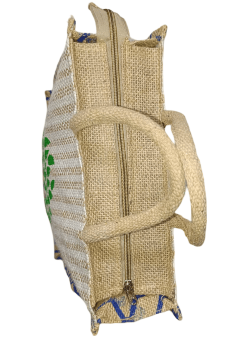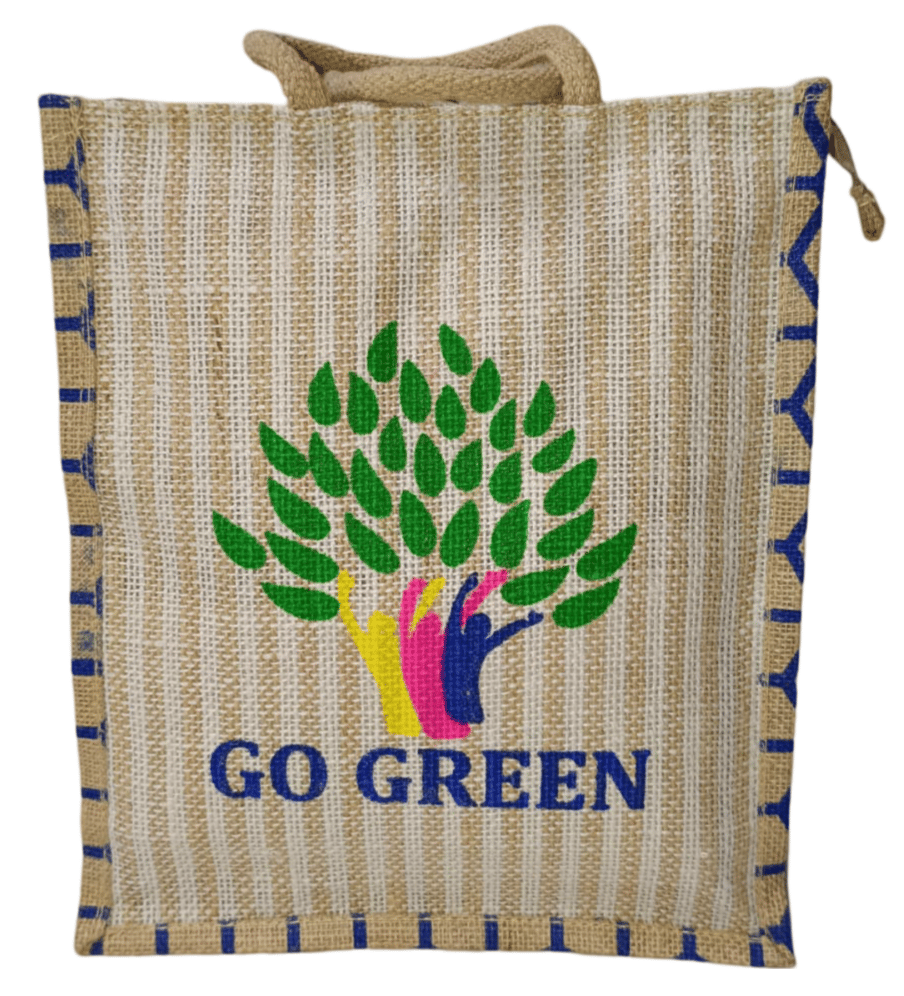 Jute Bag with Go Green Print Blue Colour (Medium)