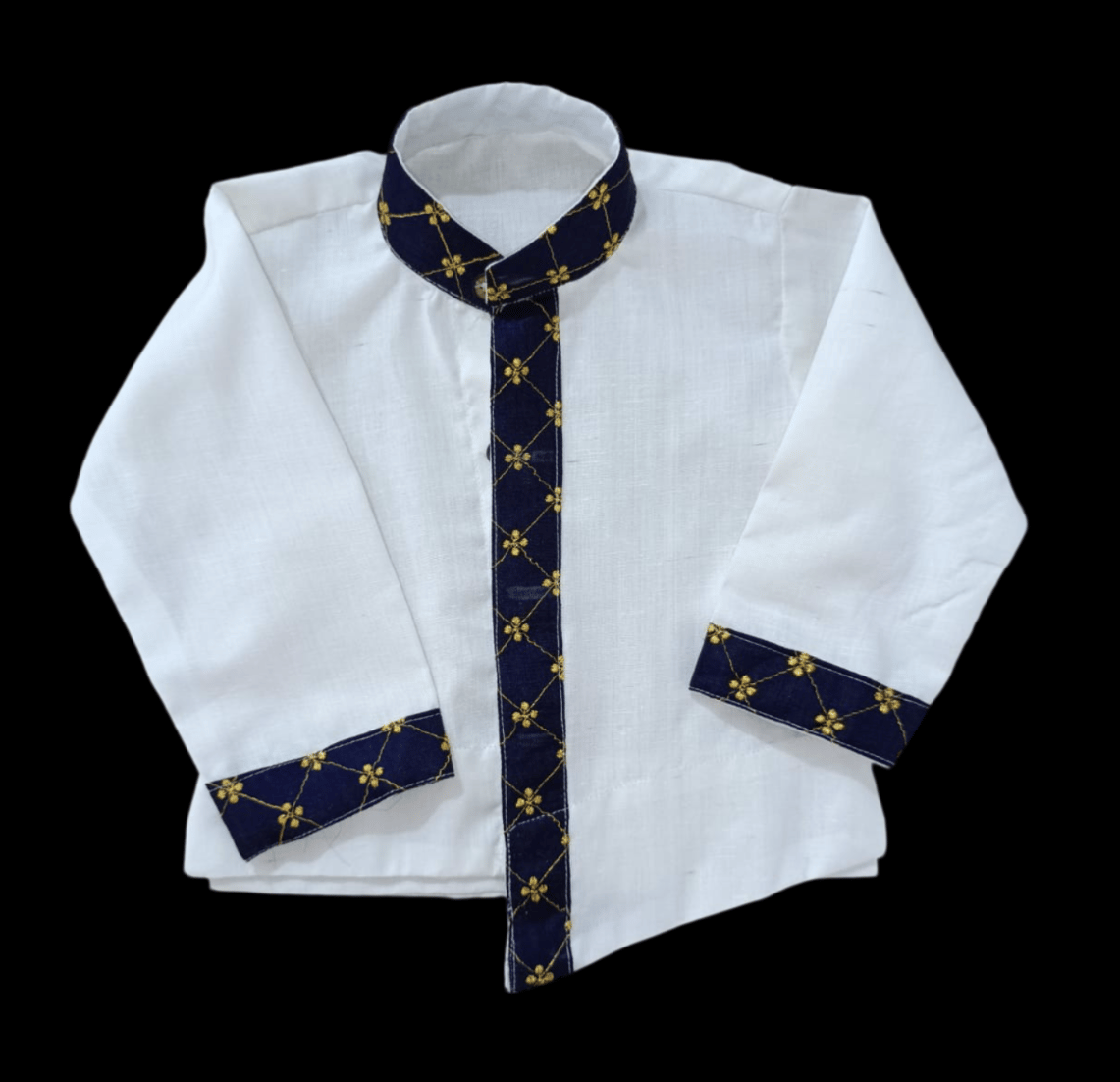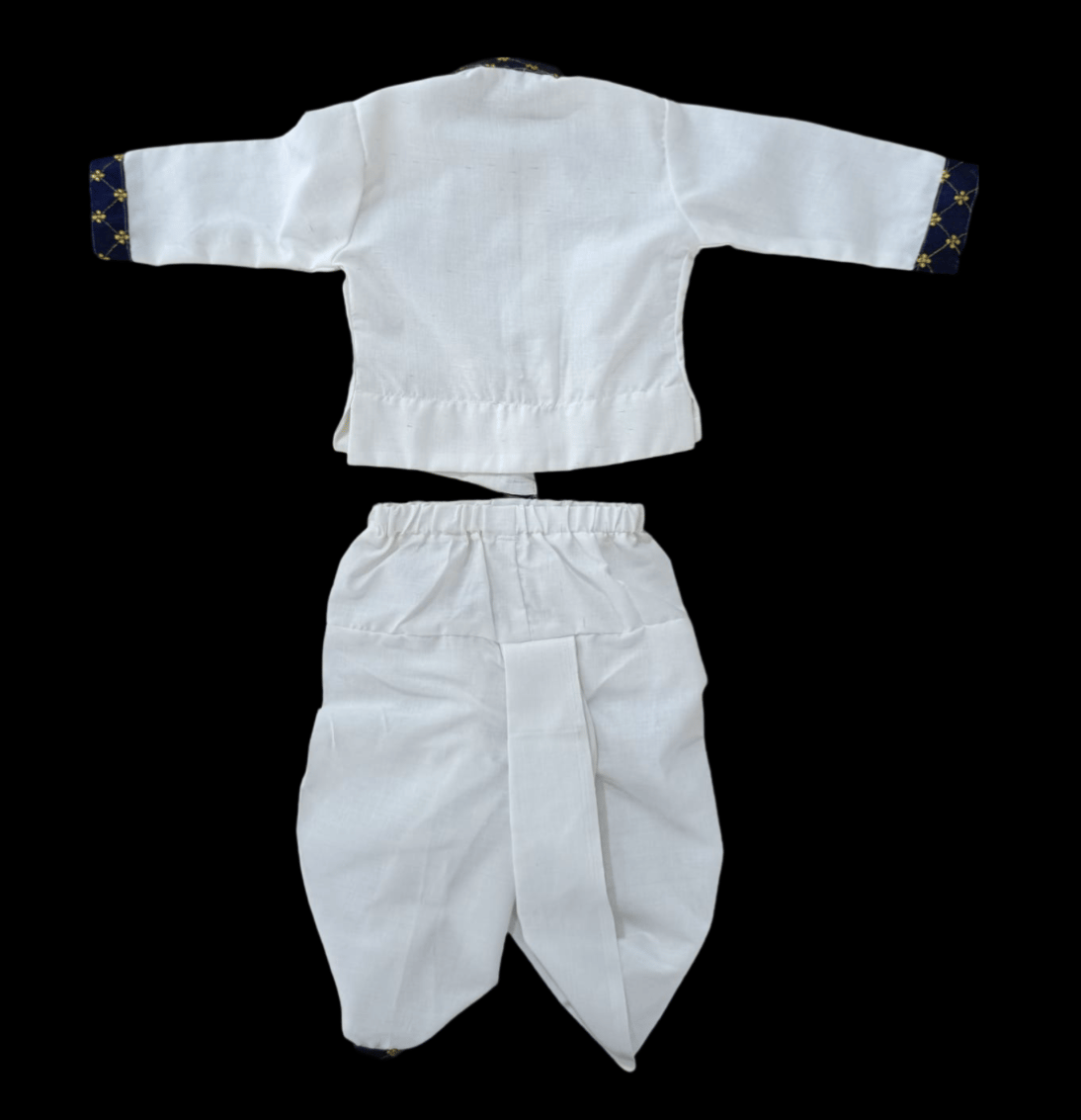 Boys White Dhoti Kurta Set with Blue Embroidery