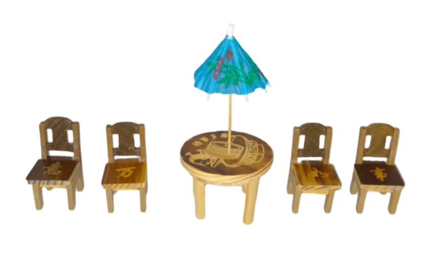 Wooden Table and Chairs Set with Umbrella {Tea Table} Small