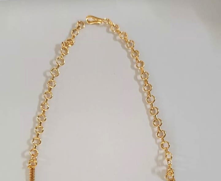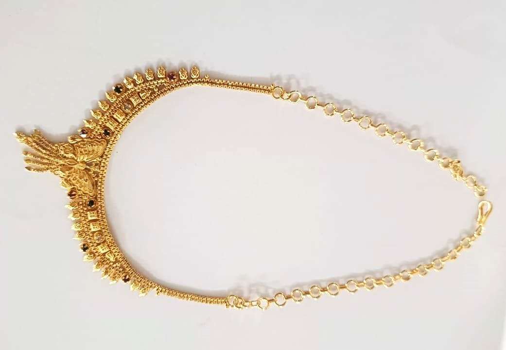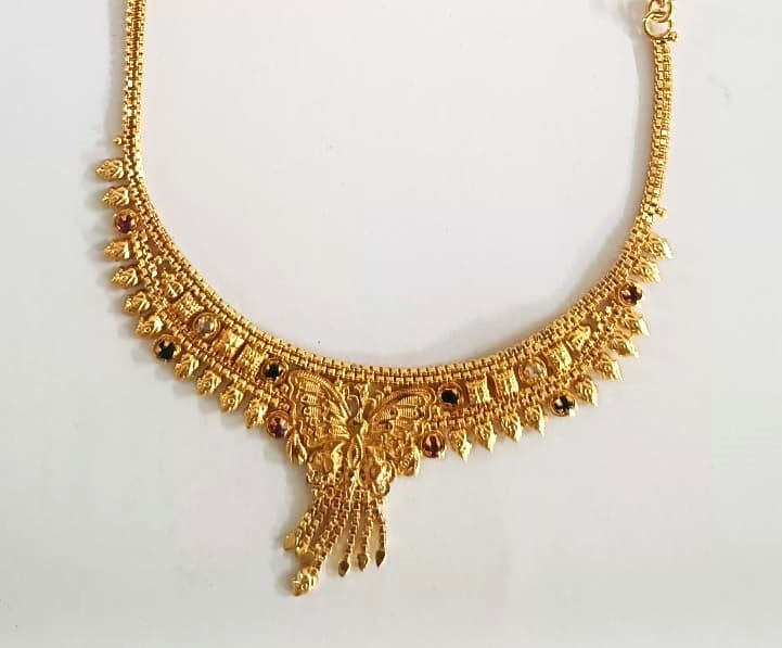 A traditional gold-plated necklace set with matching earrings for women.