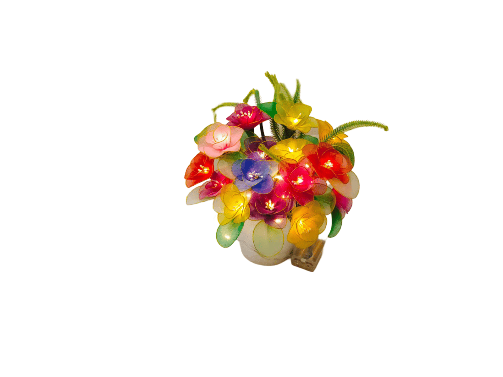 Handmade Nylon Stocking Flowers with Lighted Pot