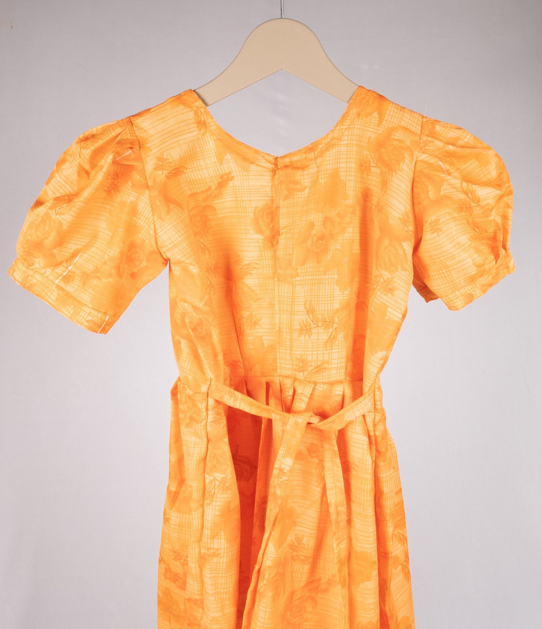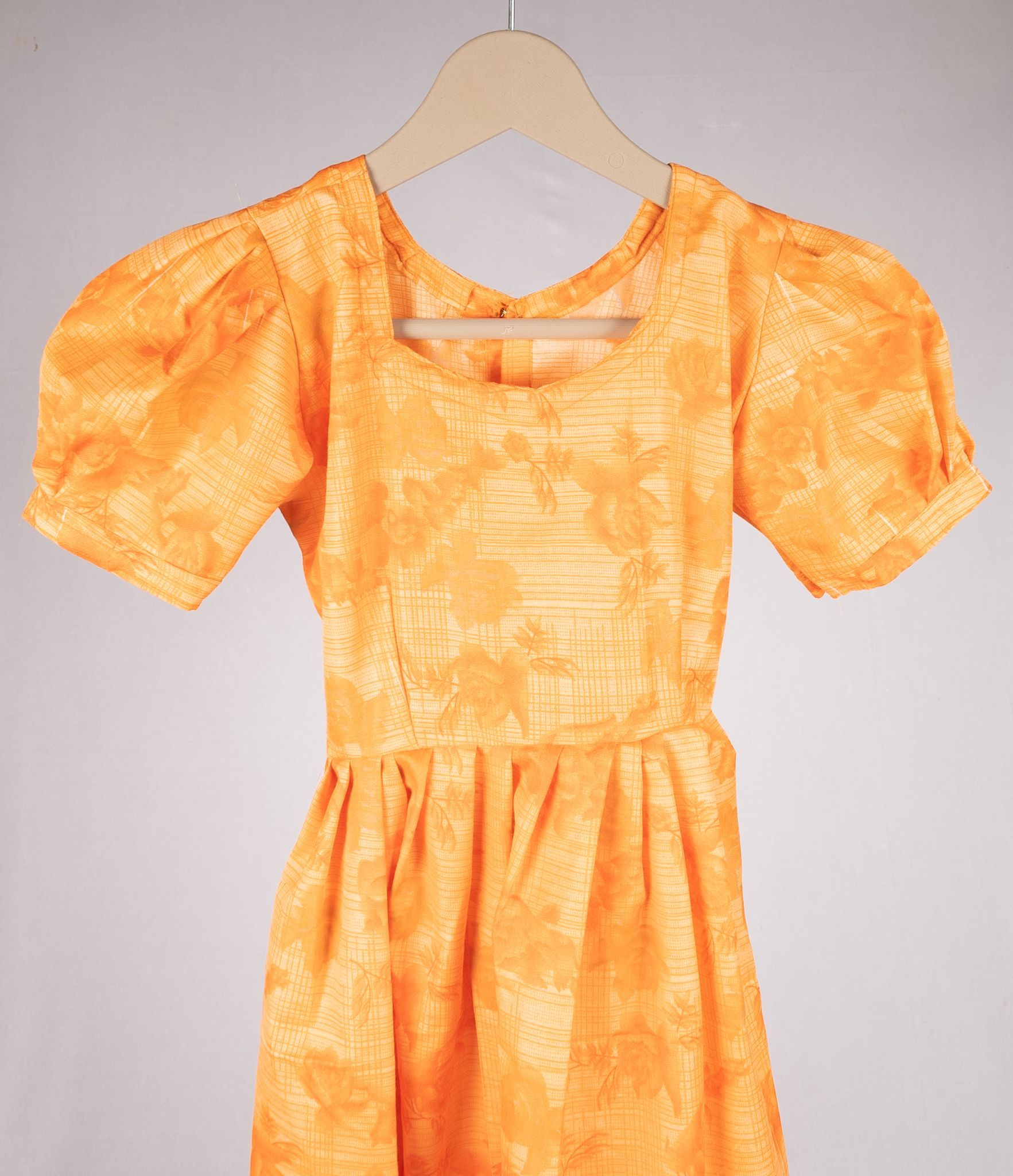 Girls Orange Floral Print Dress - Perfect for Casual Wear and Special Occasions