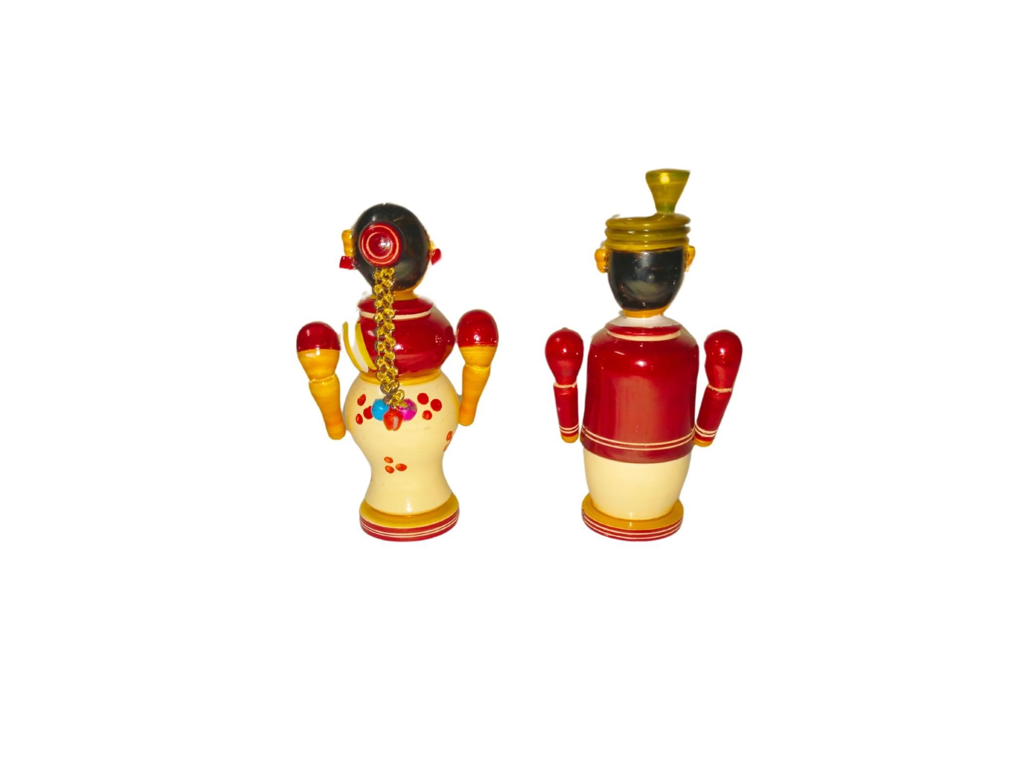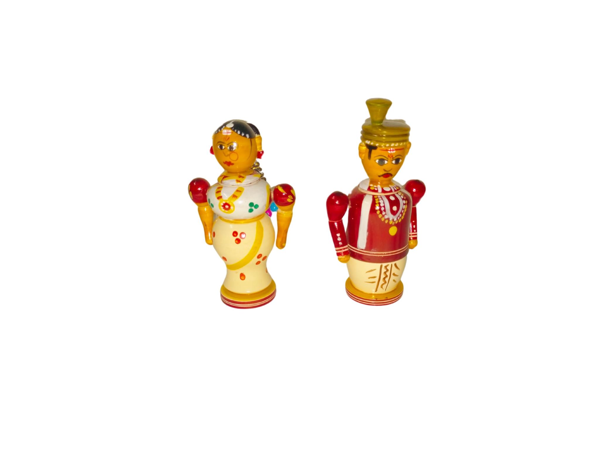 A charming handcrafted wooden set representing a traditional bride and groom. Perfect for wedding gifts, home decor, or to celebrate cultural heritage