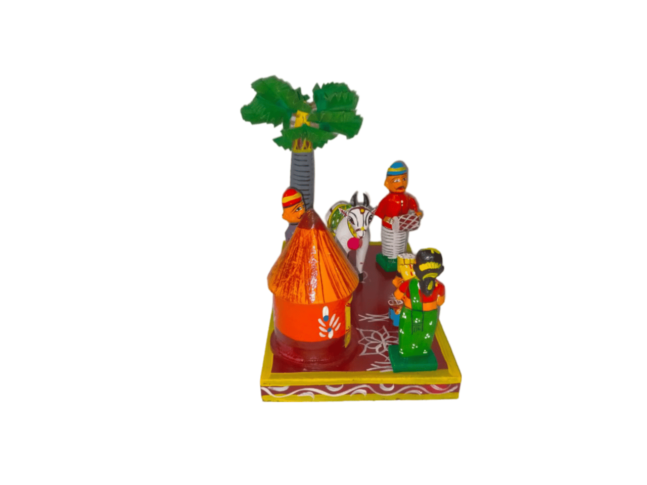 Kondapalli wooden traditional colorful Sankranti set for festive decor.