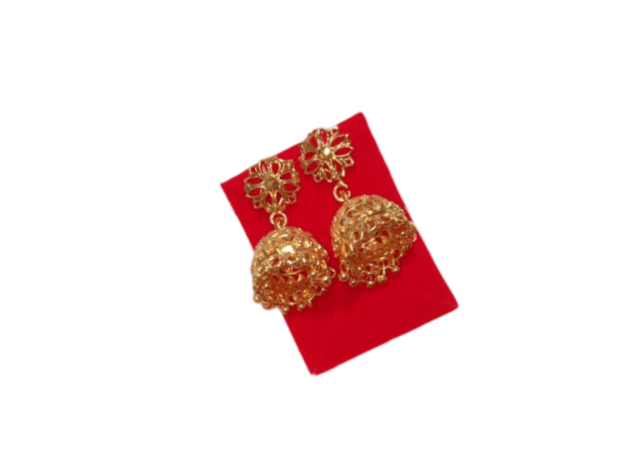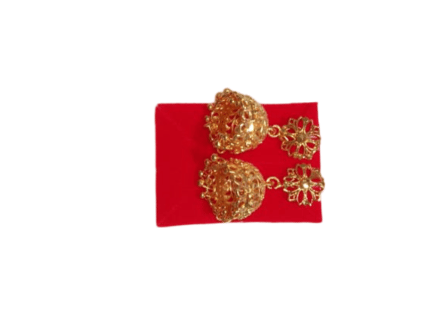 Medium-sized gold-plated jhumka earrings for a classic Indian look.