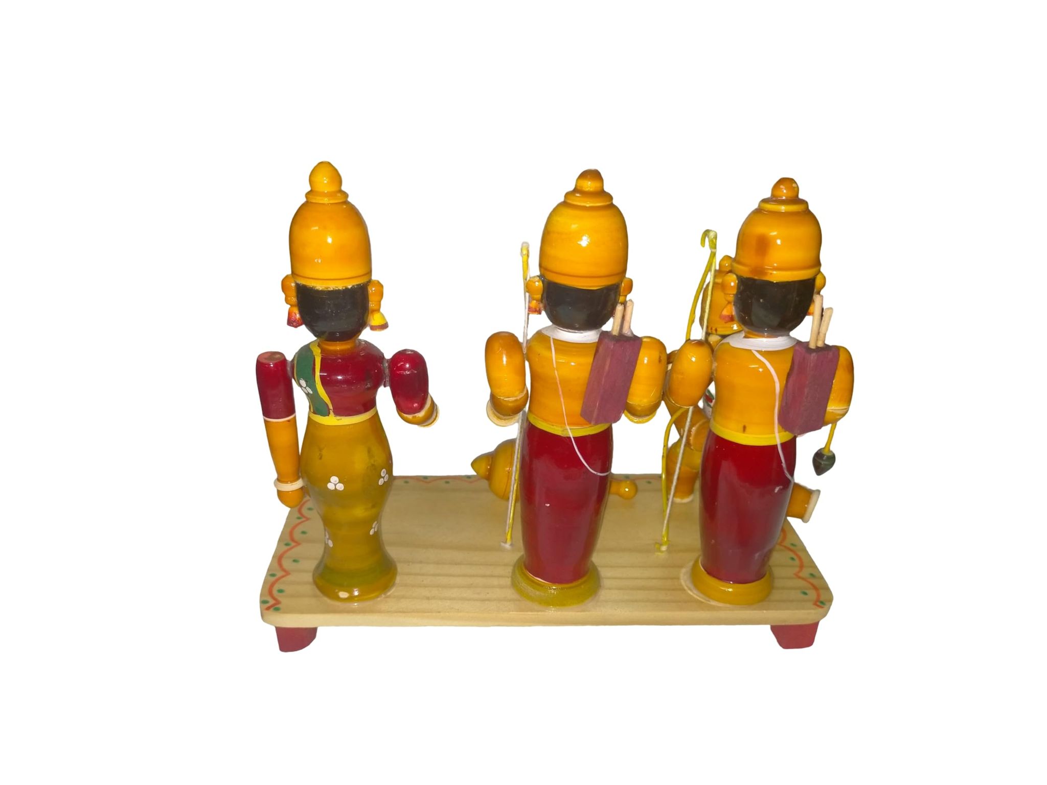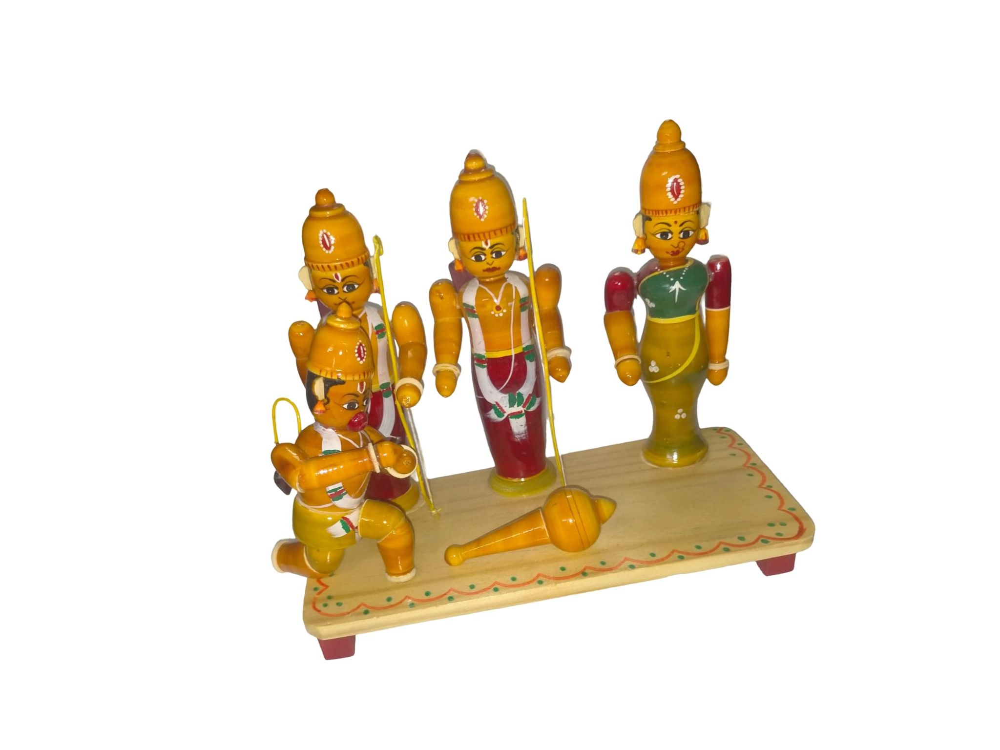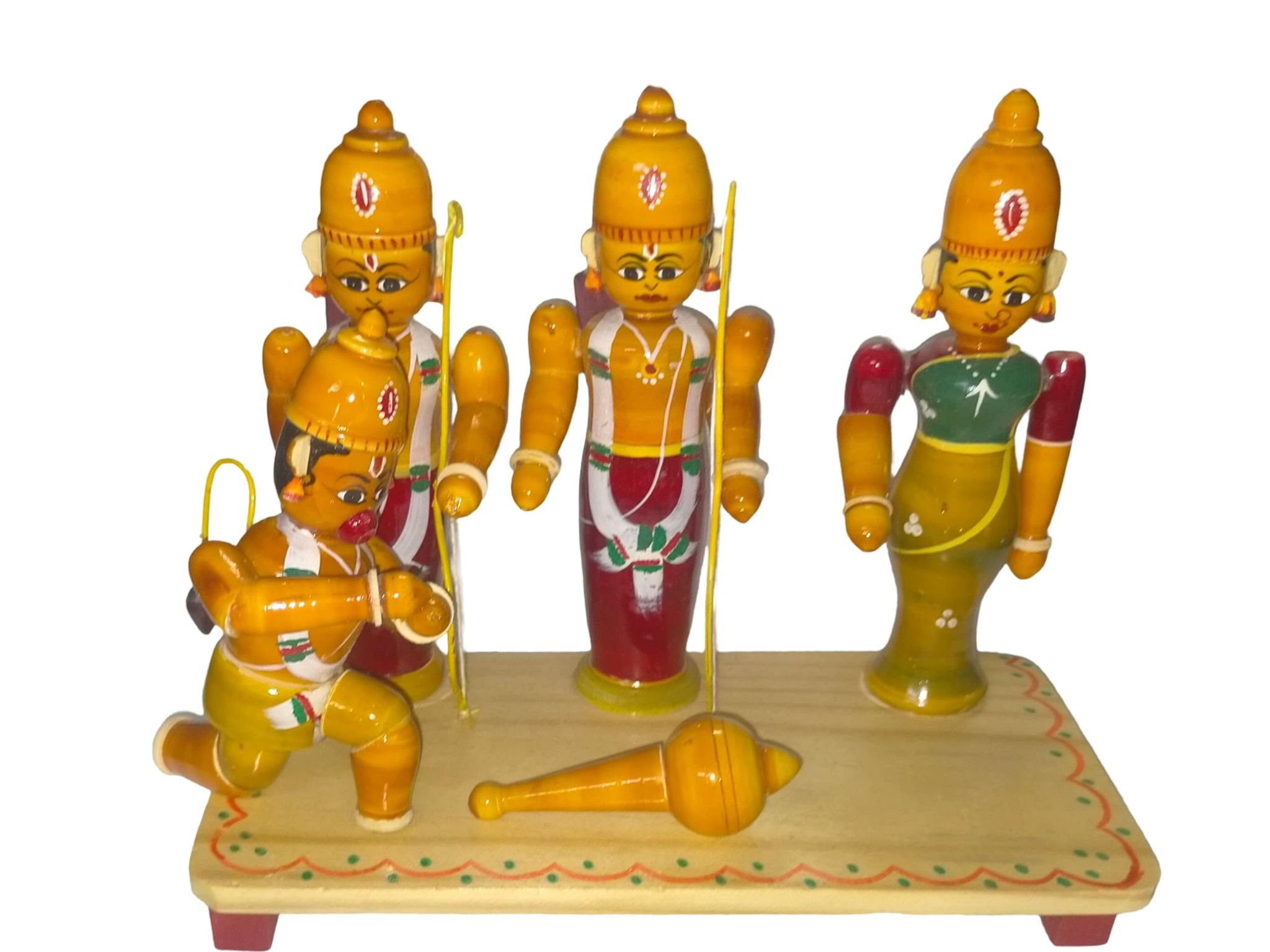 A beautiful wooden idol set of Lord Rama, Sita, Lakshmana, and Hanuman.