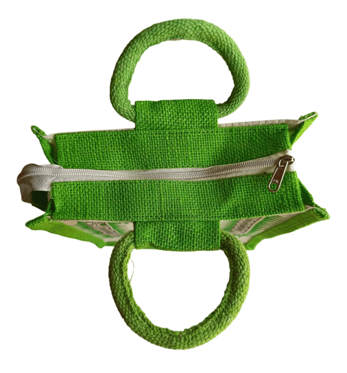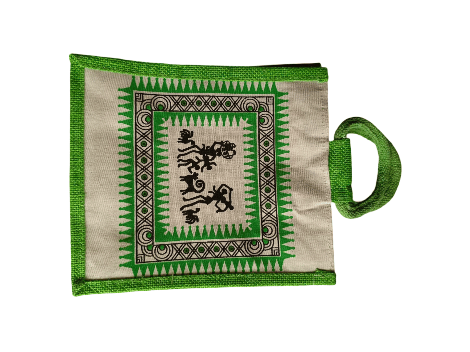 Handcrafted Green Jute Lunch Bag with Warli Painting