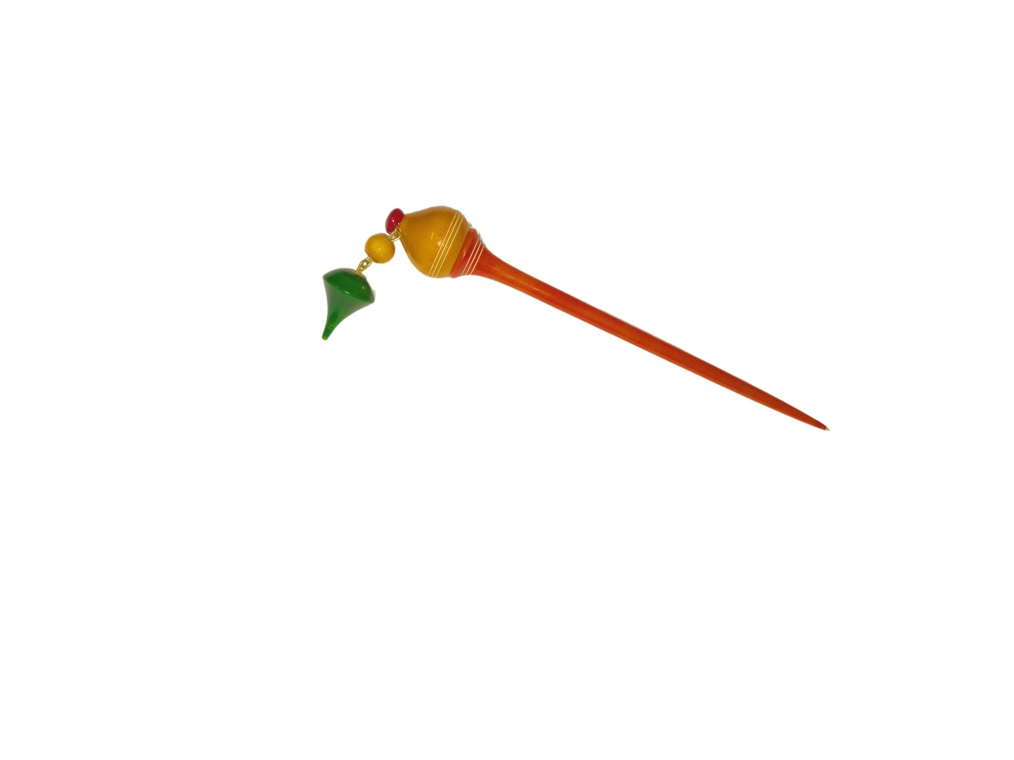 Etikoppaka Wooden Hair Bun Stick (Orange)