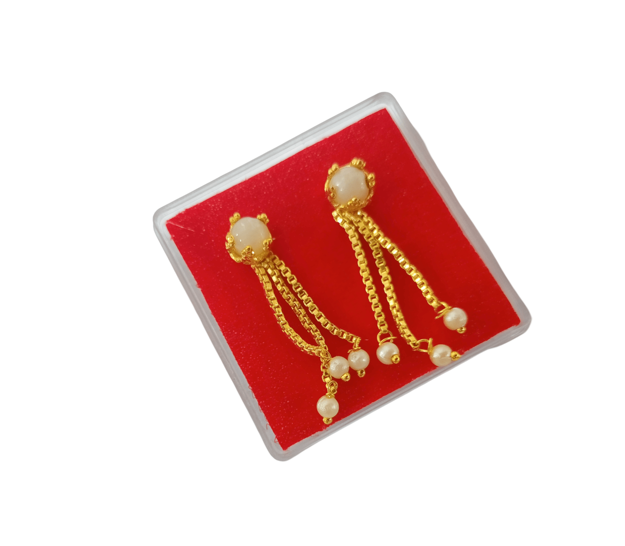 Elegant gold-plated earrings with delicate pearl drops, perfect for any occasion.