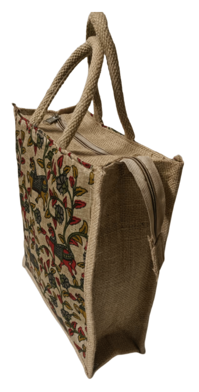 Jute Tote Bag with Horse Print (Small)