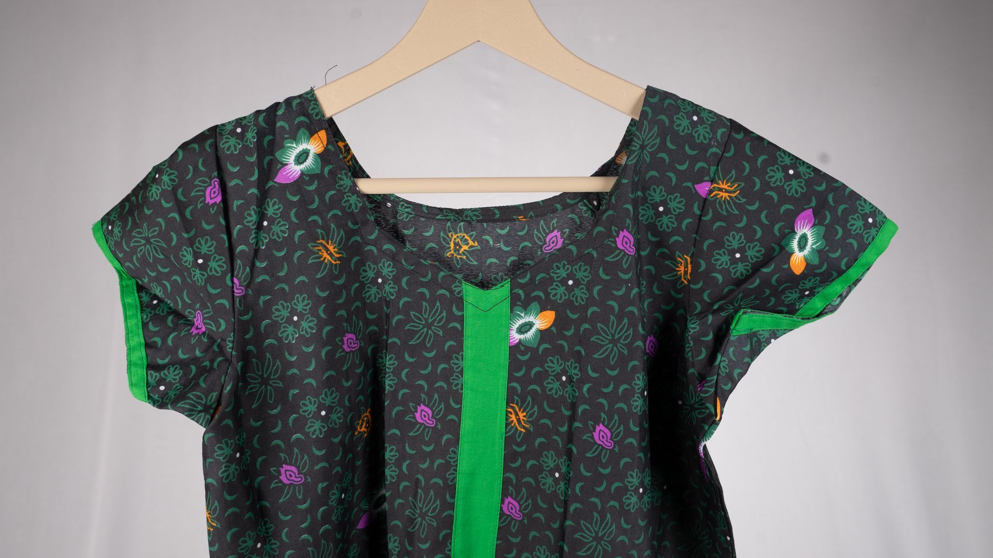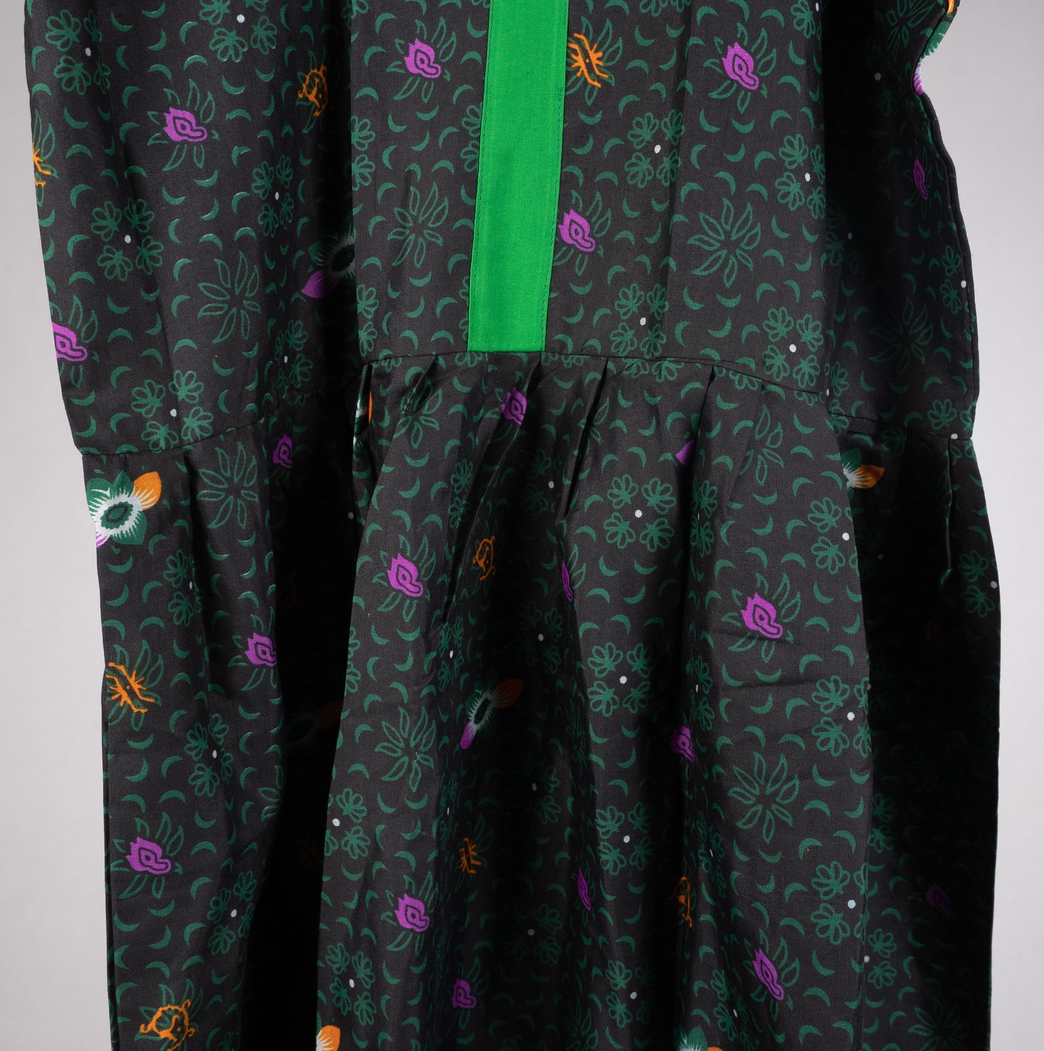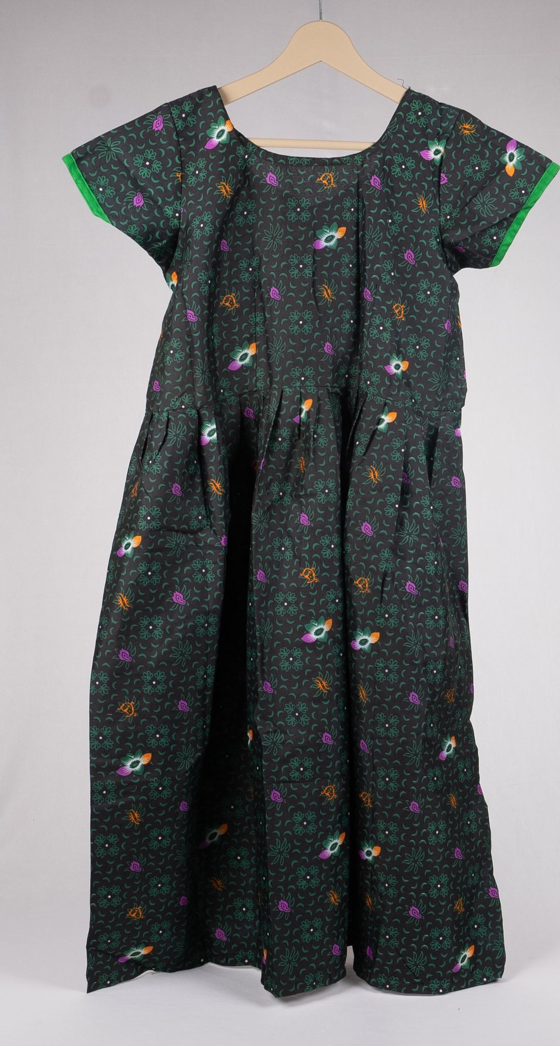Adorable Floral Print Cotton Frock with Green Piping - Perfect for Kids and Everyday Wear