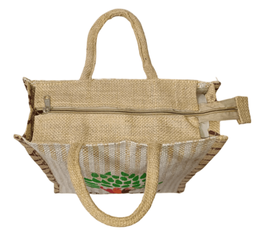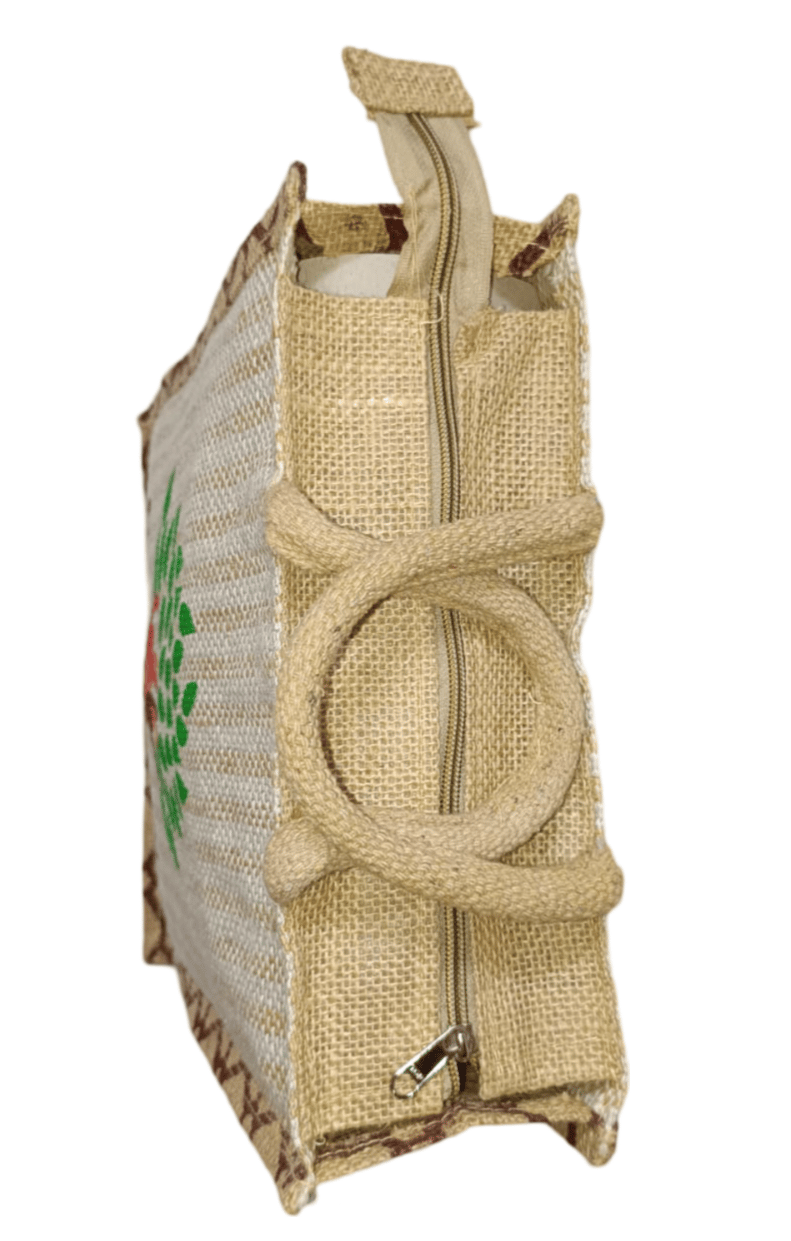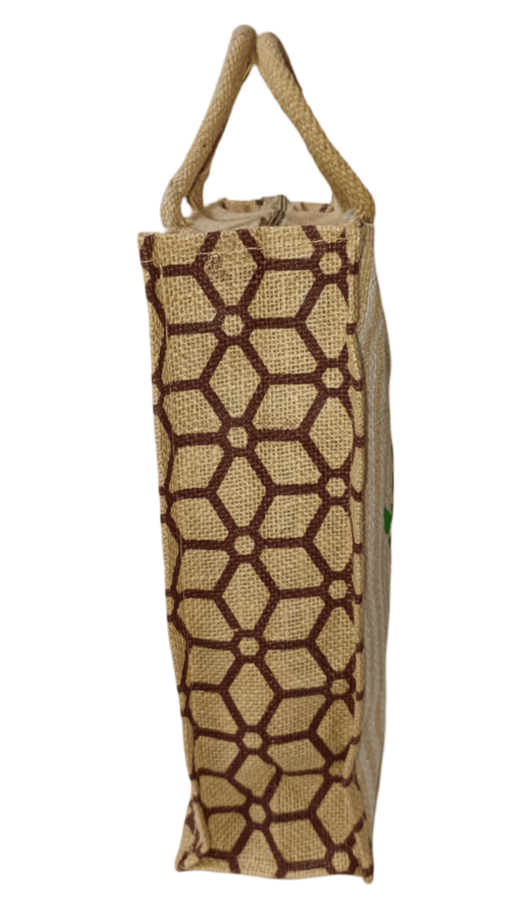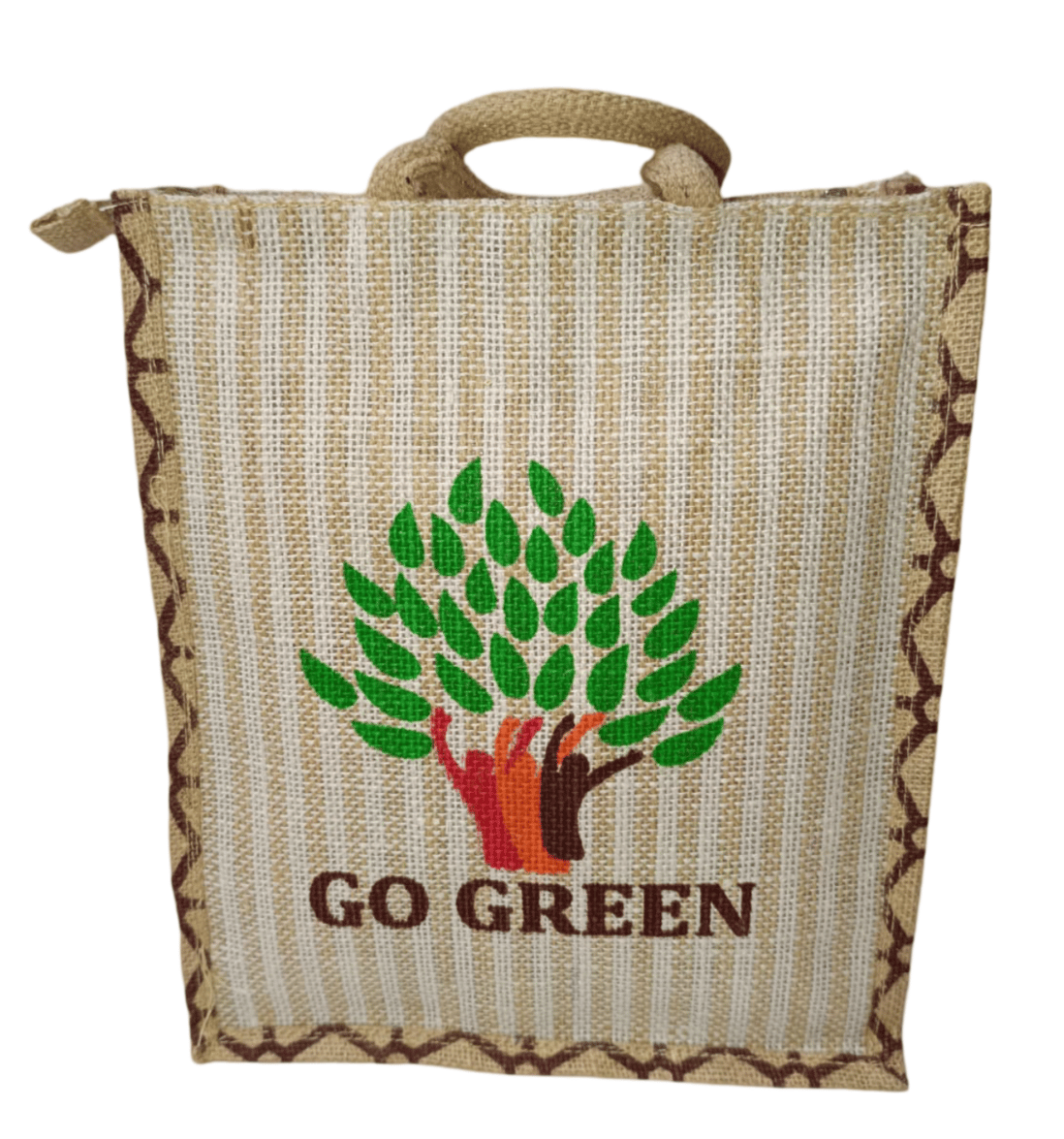 Jute Tote Bag with Go Green Print Brown Colour (Medium)