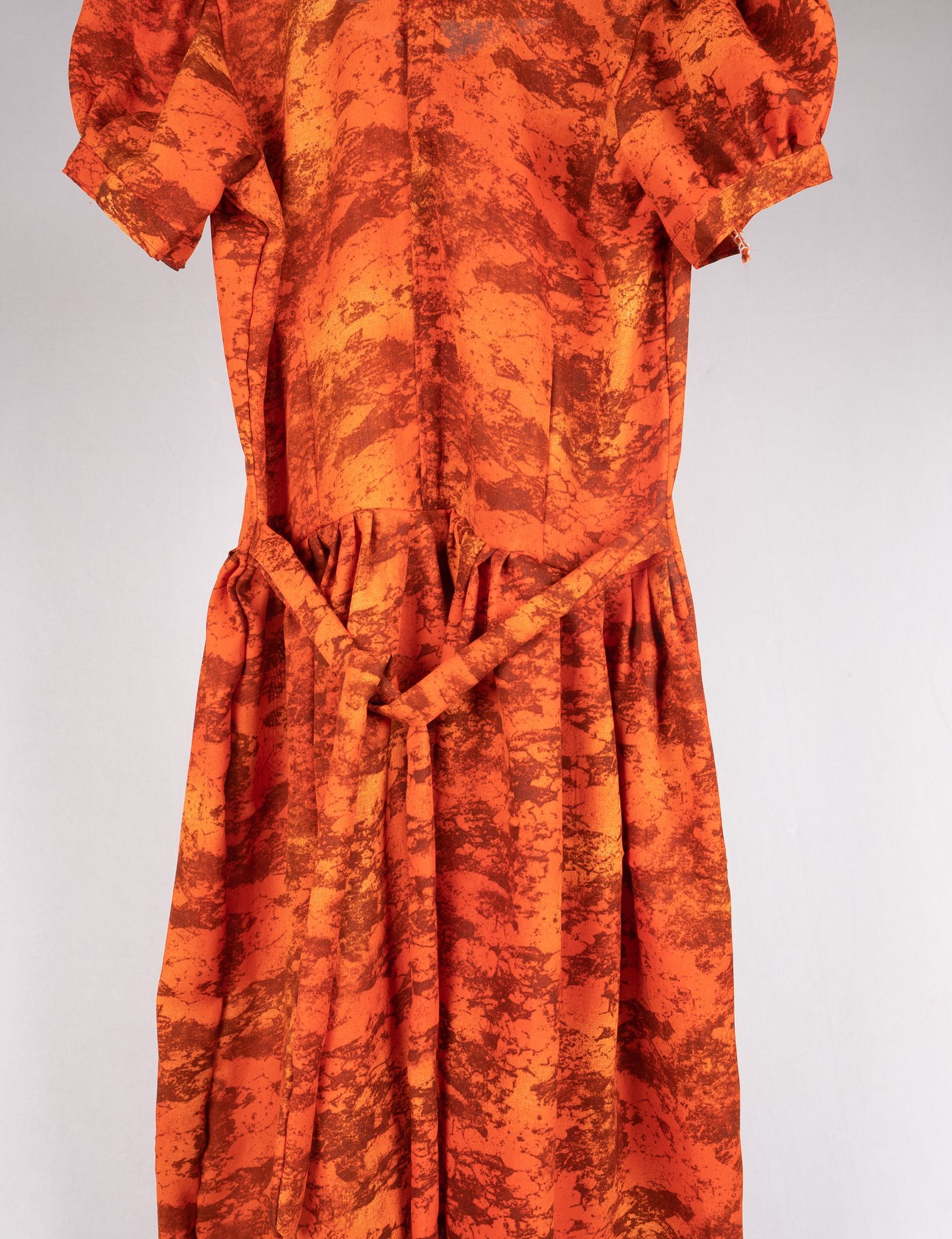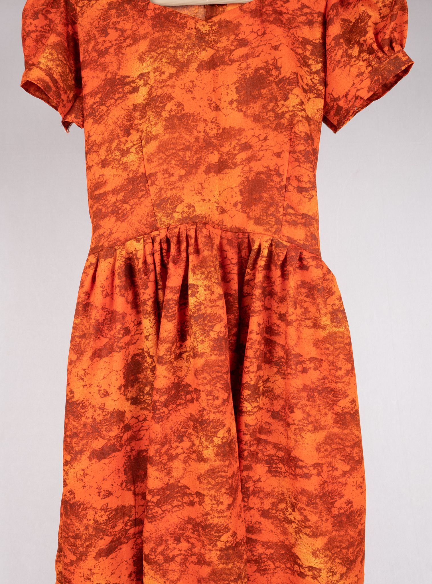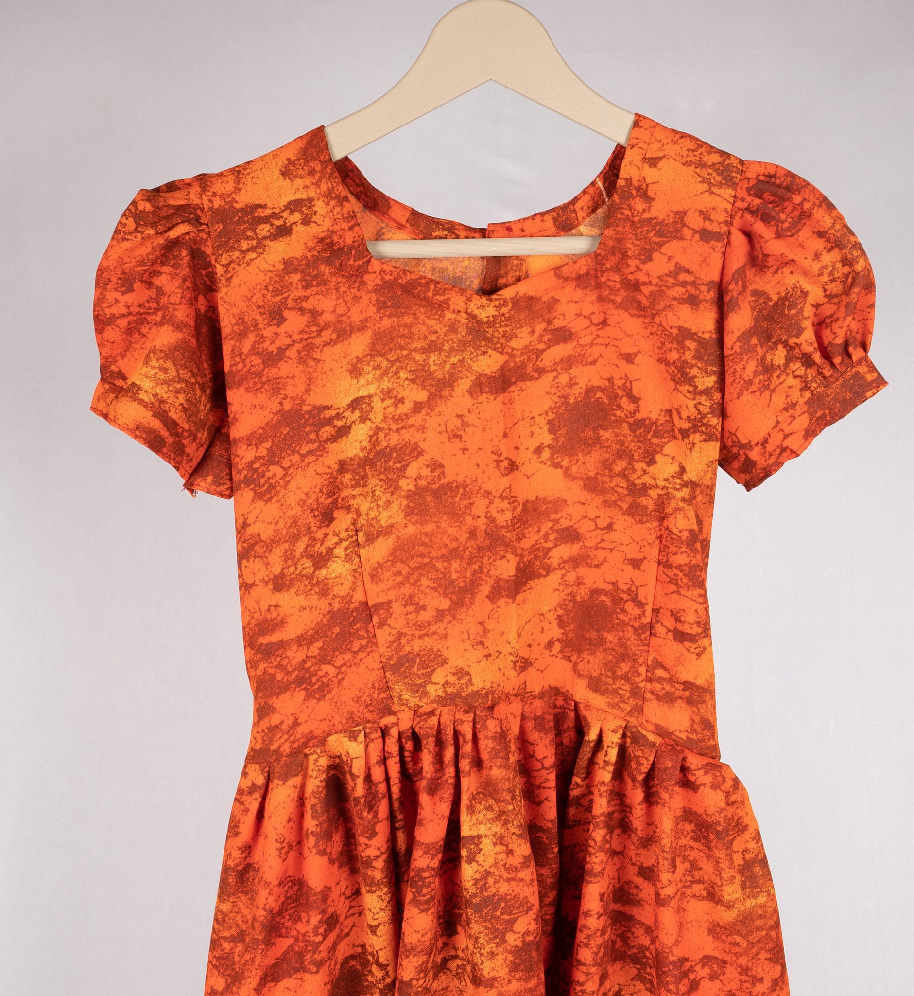 Burnt Orange Prairie Dress with Puff Sleeves - Elegant and Comfortable Dress for Women