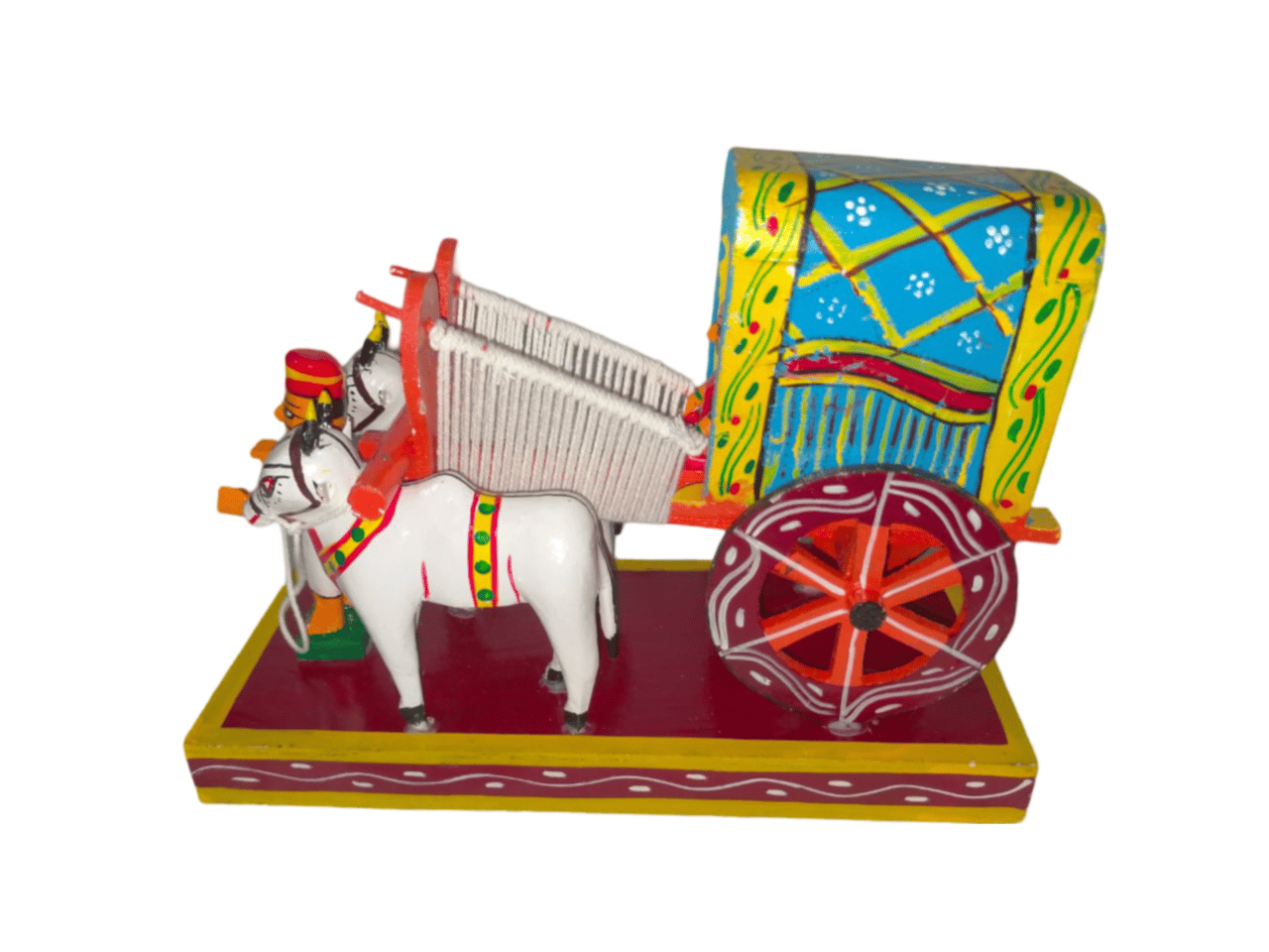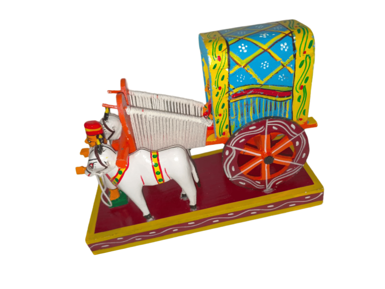 Multicolor Wooden Ox-Cart Showpiece