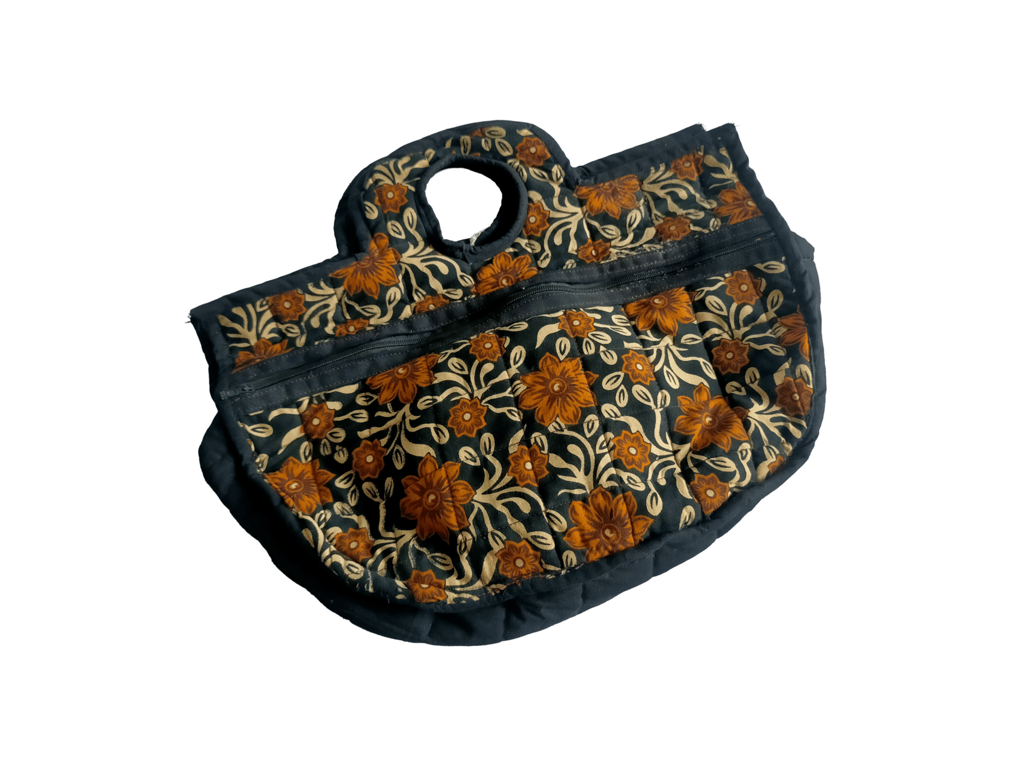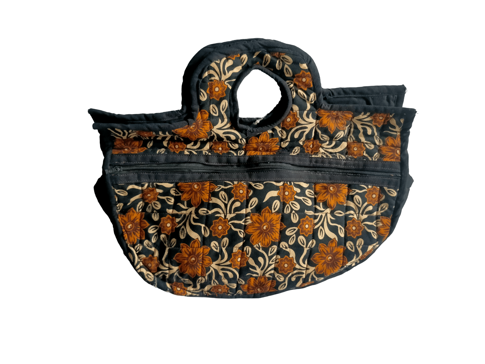 A handmade cotton tote bag with a floral print, lightweight and stylish.