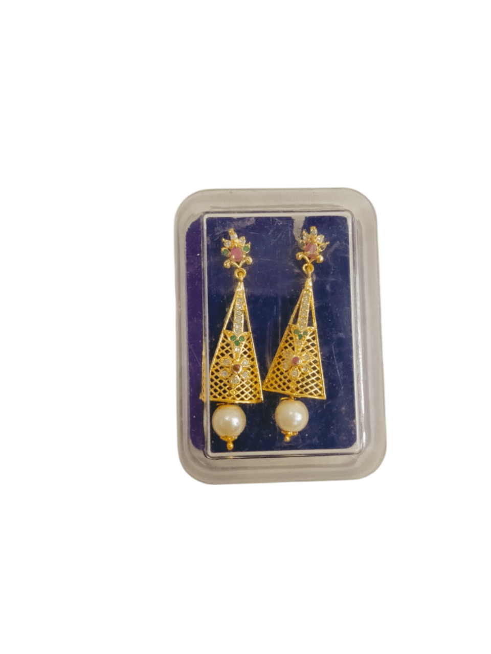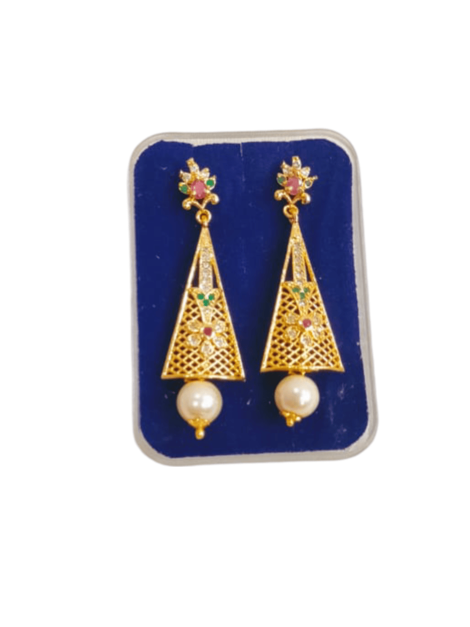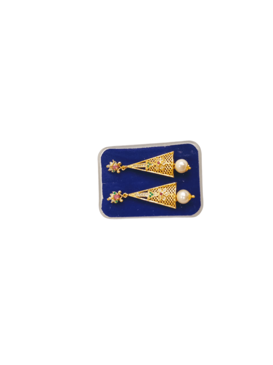Stunning Gold-Plated Triangular Jhumka Earrings with Pearls for Women
