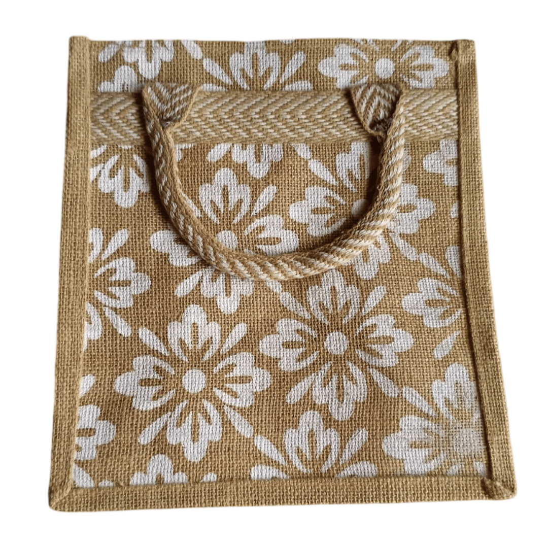 Handcrafted Jute Tote Bag with Floral Prints - Eco-Friendly and Reusable Shopping Bag