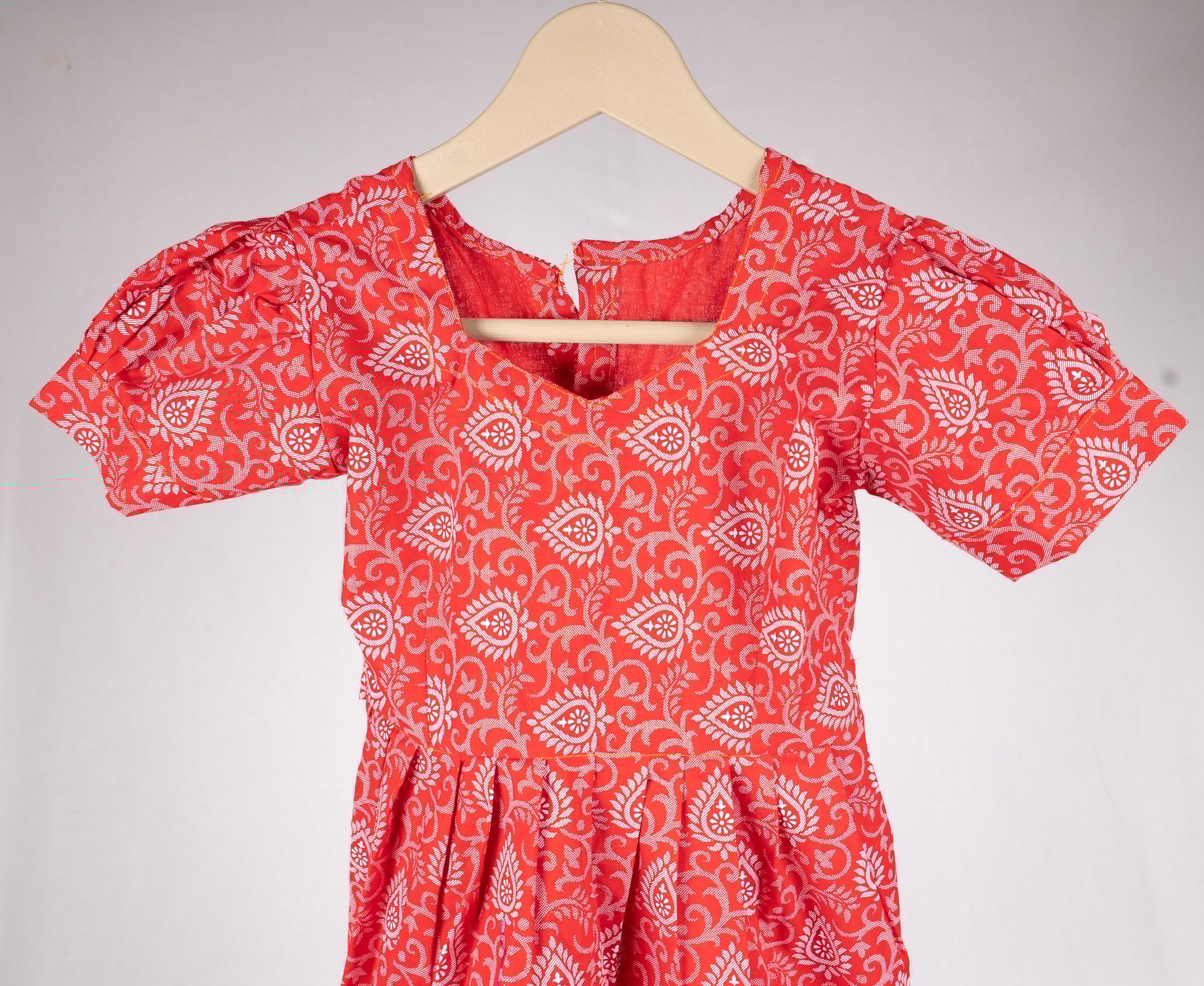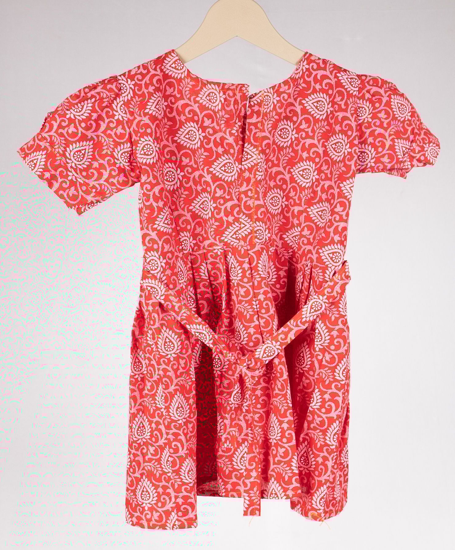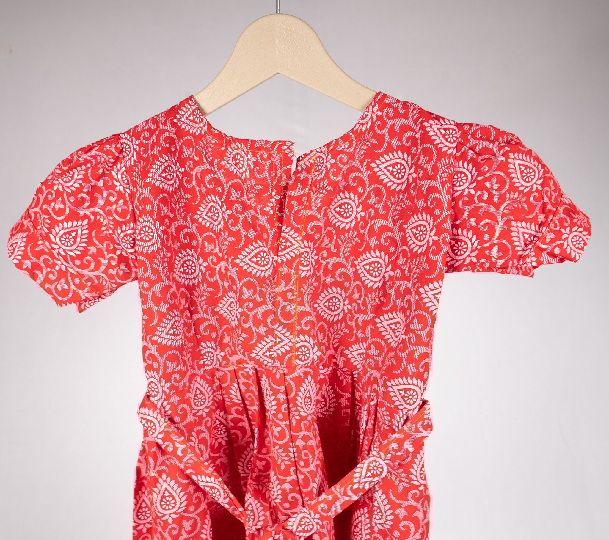Cute cotton dress with red and white floral design.