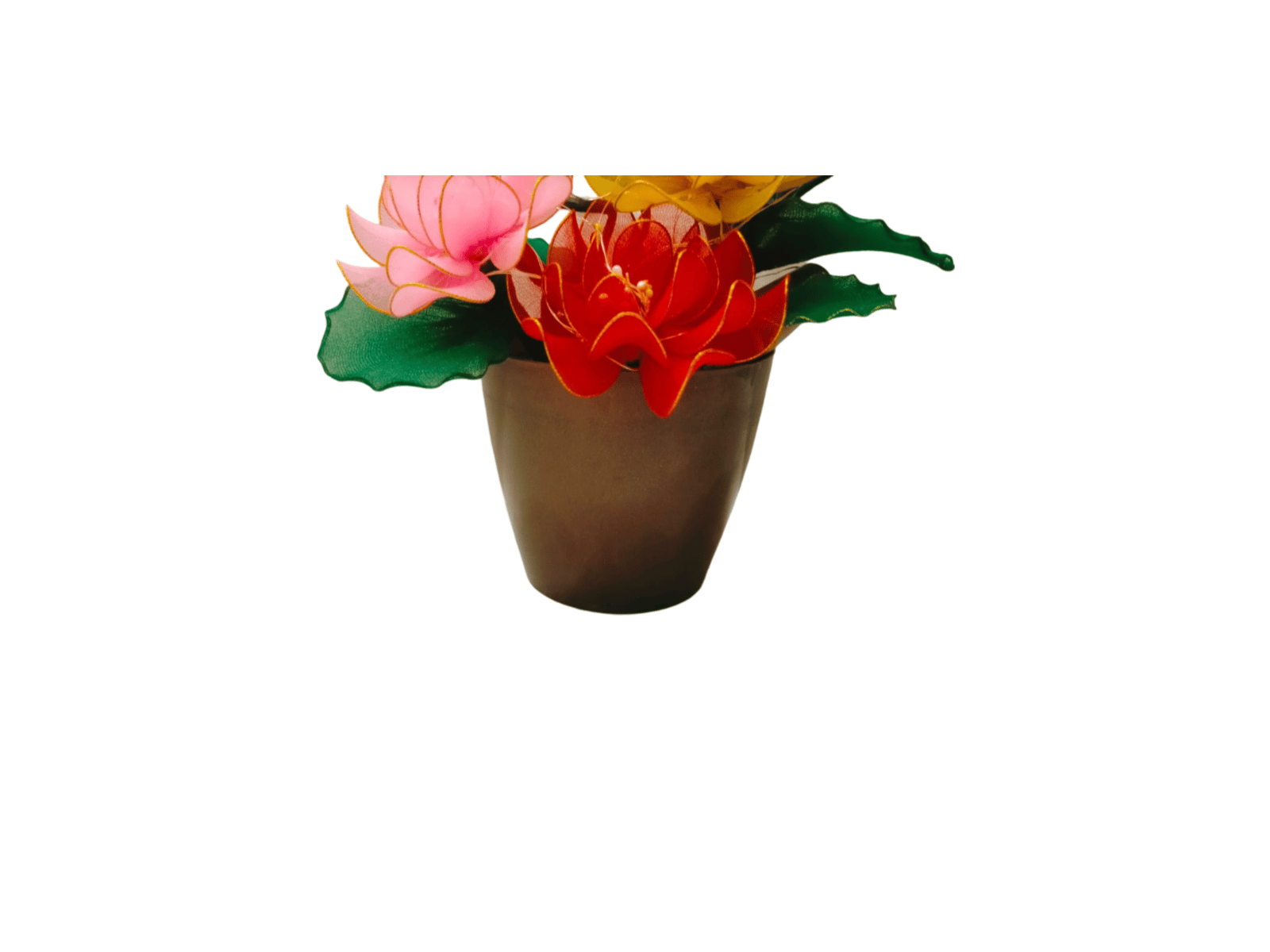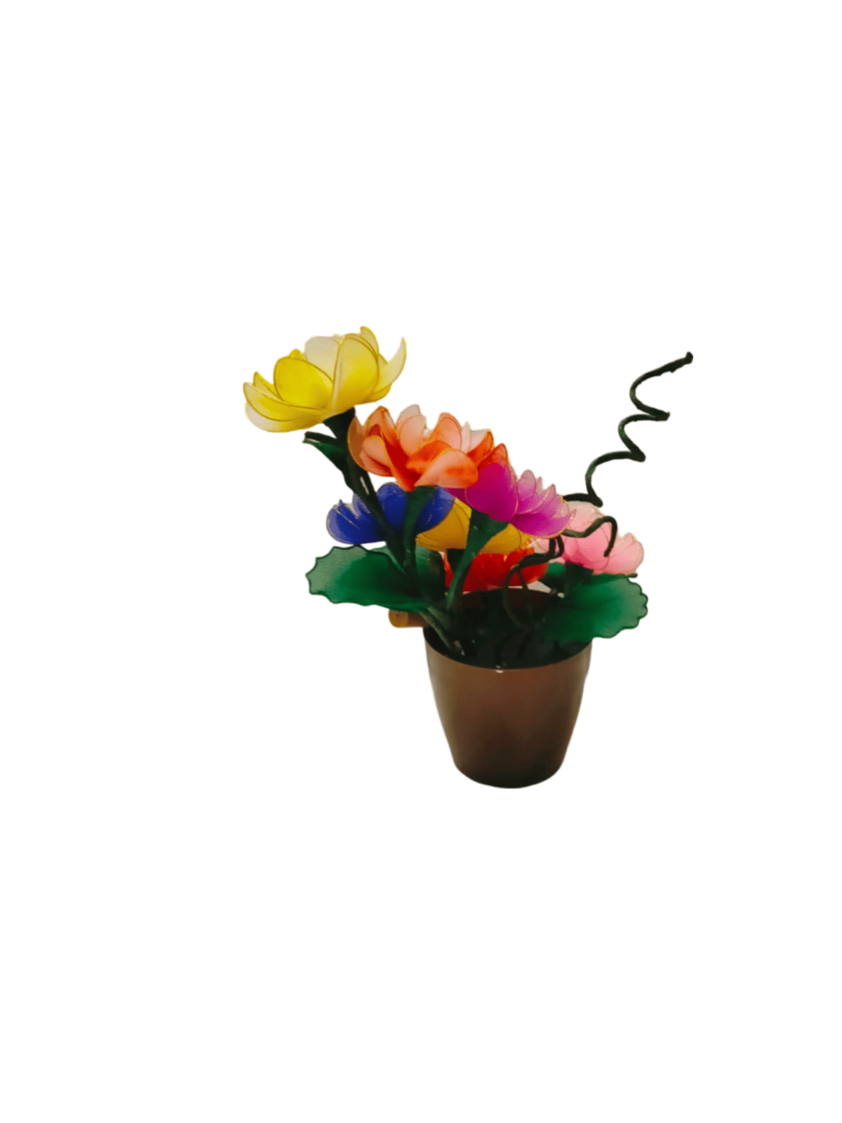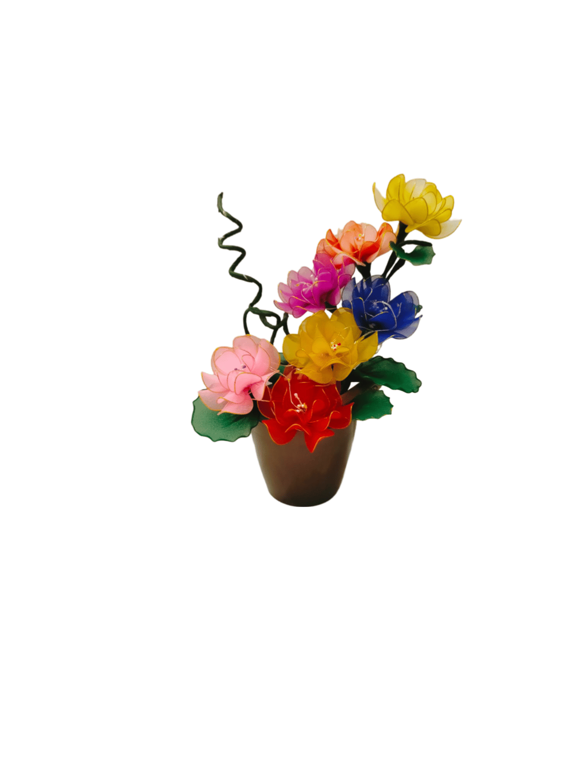 Handmade brown pot with multicolor rose flowers, ideal for home or office décor.