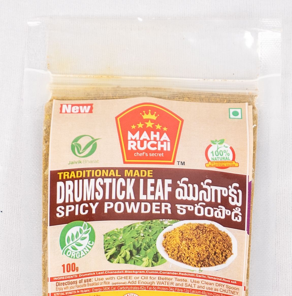 Healthy drumstick leaf spicy powder made with organic ingredients.