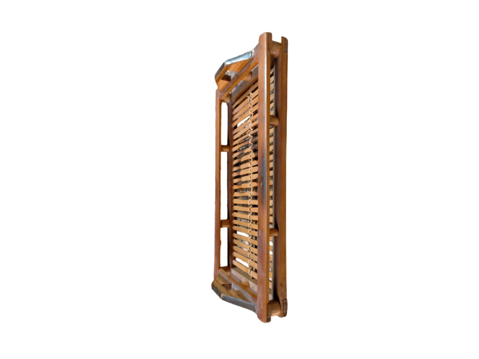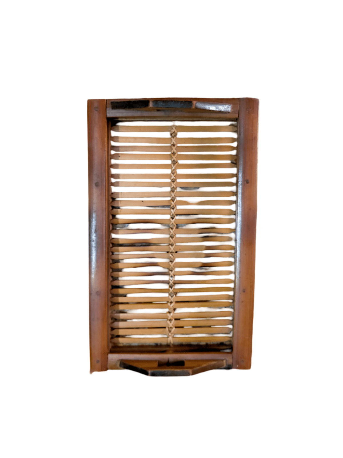 Eco-friendly bamboo serving tray with handles. Perfect for serving snacks or beverages.