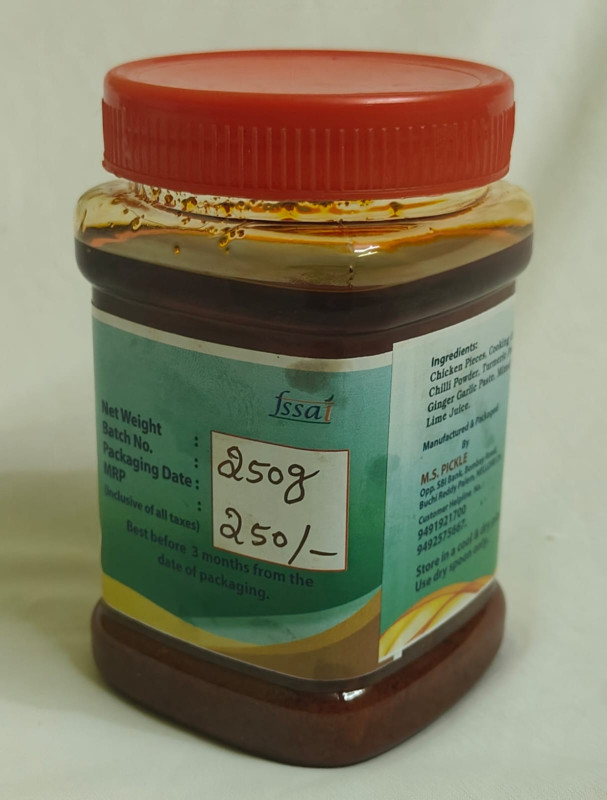 Pickle is a delicious and tangy pickle made from fresh Amlas. This pickle is a great way to add a kick of flavor to your meals. It can be enjoyed with rice, roti, or as a side dish. This pickle is made with the finest ingredients, including chicken spices, and oil. It is also gluten-free and vegan-friendly. Chicken Pickle is a great way to add a touch of Indian flavor to your meals. It is a delicious and versatile pickle that can be enjoyed by everyone. Benefits: Made with fresh tomatoesGluten-freeVegan-friendlyDelicious and tangy flavorA great way to add a kick of flavor to your meals Usage: Enjoy with rice, roti, or as a side dishAdd to salads, sandwiches, or wrapsUse as a marinade for meats or vegetables Ingredients: chicken SpicesOilSalt Storage: Store in a cool, dry placeRefrigerate after opening
