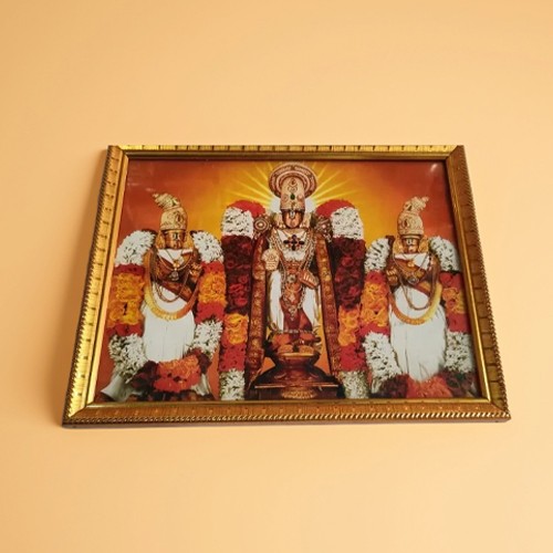 Imagine sitting with your family, looking at a photo of your favorite memory. The frame around the photo is special because it reminds you of Tirupathi, a place full of blessings. The beautiful carvings make the photo feel even more special, as if it’s wrapped in the love of Lord Venkateswara.