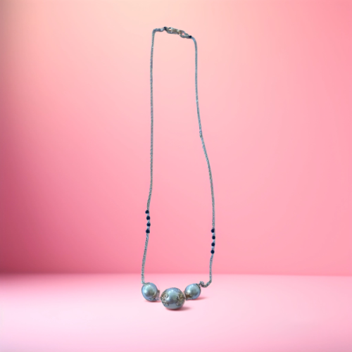 Crafted with high-quality black beads and a sturdy chain, this piece is designed for durability and comfort. The lightweight design ensures you can wear it all day without any discomfort, making it ideal for daily wear as well as special events.