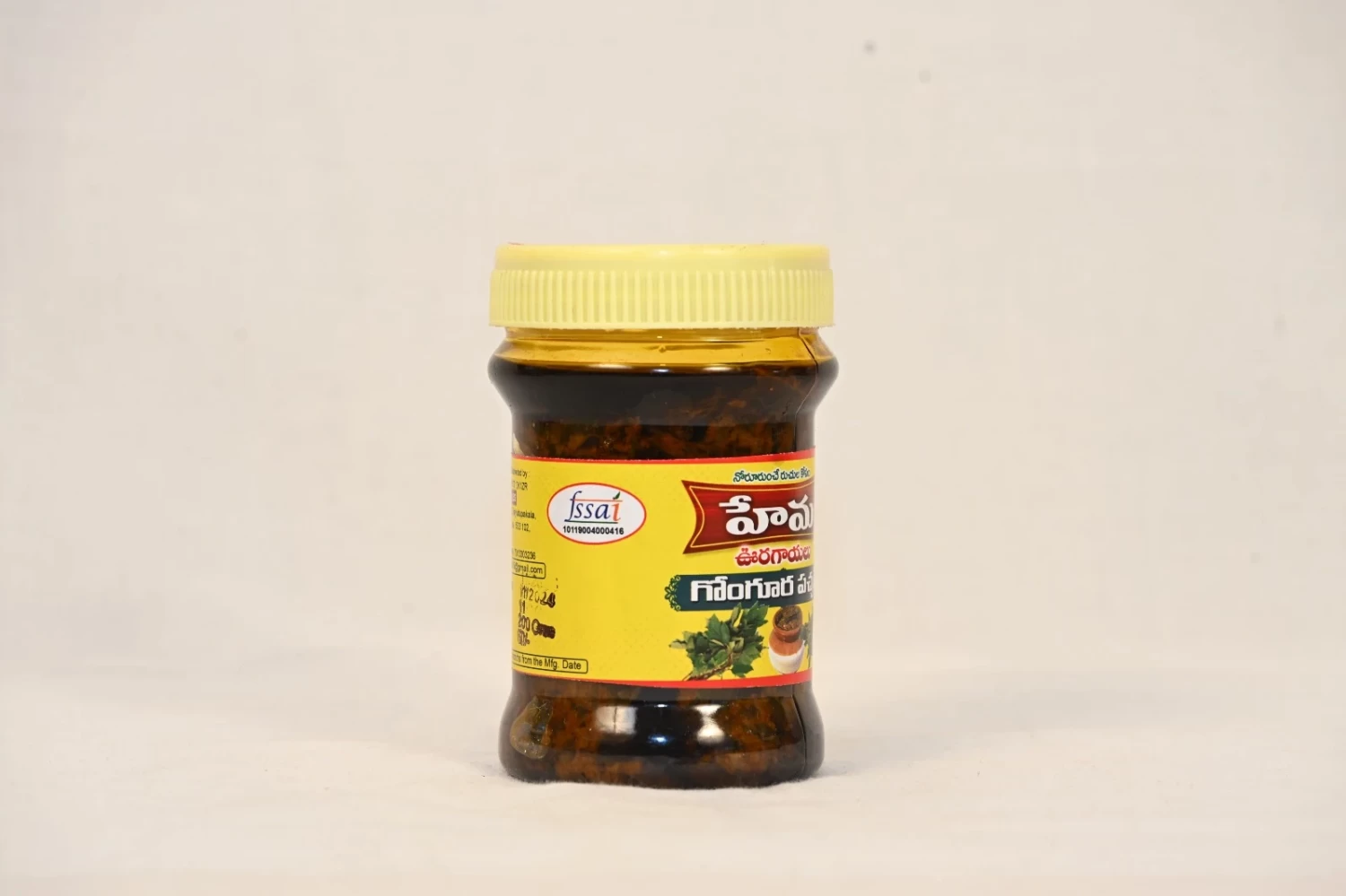 Even today, we follow the same traditional methods. We source the freshest gongura leaves, combine them with homegrown spices, and prepare them with love. Every spoonful of our Andhra Gongura Pickle brings you the genuine, homemade taste of our villages.