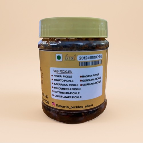 Experience the authentic taste of Kakarla Pandu Mirchi Pickle, a perfect blend of spicy red chilies, aromatic spices, and traditional flavors. Made with fresh, handpicked chilies, this pickle delivers a fiery kick balanced with a tangy twist, making every meal more flavorful.