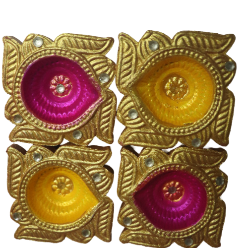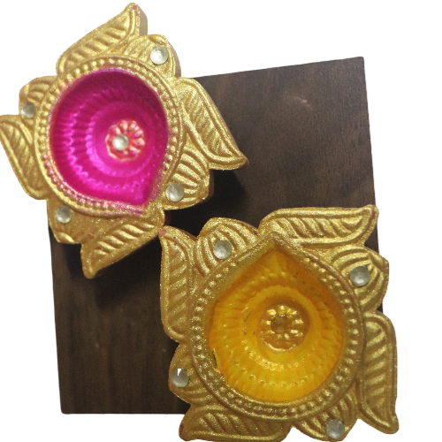 This is a beautiful pair of handmade clay diyas, perfect for Diwali or any other special occasion. The diyas are made of high-quality clay and are hand-painted with intricate designs. They are also lead-free and non-toxic, so you can be sure that they are safe to use. The diyas are approximately 4 inches tall and 3 inches wide, and they come with a set of two wicks. They are easy to light and will burn for several hours. These diyas are a great way to add a touch of tradition to your home. They are also a perfect gift for friends and family. Product Features Handmade from high-quality clayHand-painted with intricate designsLead-free and non-toxicApproximately 4 inches tall and 3 inches wideCome with a set of two wicksEasy to light and will burn for several hours Benefits Add a touch of tradition to your homePerfect for Diwali or any other special occasionGreat gift for friends and family How to Use Place the diyas on a flat surface.Light the wicks.Enjoy the beautiful light! Safety Information Keep away from children and pets.Do not leave unattended.Burn on a heat-resistant surface.