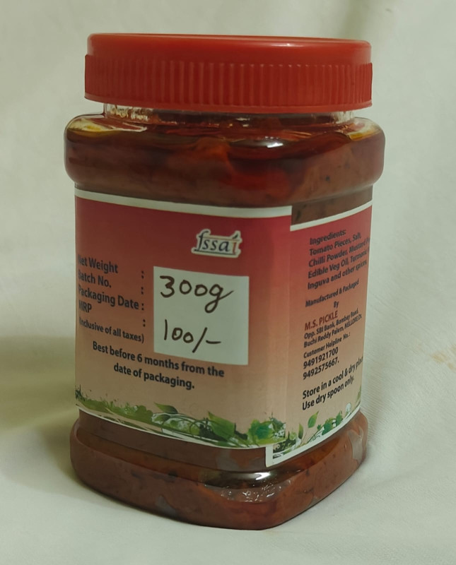 Pickle is a delicious and tangy pickle made from fresh Amlas. This pickle is a great way to add a kick of flavor to your meals. It can be enjoyed with rice, roti, or as a side dish. This pickle is made with the finest ingredients, including Tomato, spices, and oil. It is also gluten-free and vegan-friendly. Tomato Pickle is a great way to add a touch of Indian flavor to your meals. It is a delicious and versatile pickle that can be enjoyed by everyone. Benefits: Made with fresh tomatoesGluten-freeVegan-friendlyDelicious and tangy flavorA great way to add a kick of flavor to your meals Usage: Enjoy with rice, roti, or as a side dishAdd to salads, sandwiches, or wrapsUse as a marinade for meats or vegetables Ingredients: TomatoesSpicesOilSalt Storage: Store in a cool, dry placeRefrigerate after opening