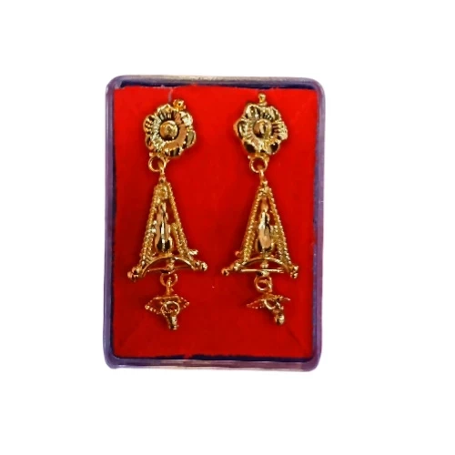 • 2N (1 Pair) Gold-Plated Red Artificial Stone studded Dome Shaped Floral Jhumka Earrings, Secured with Push Back closure.